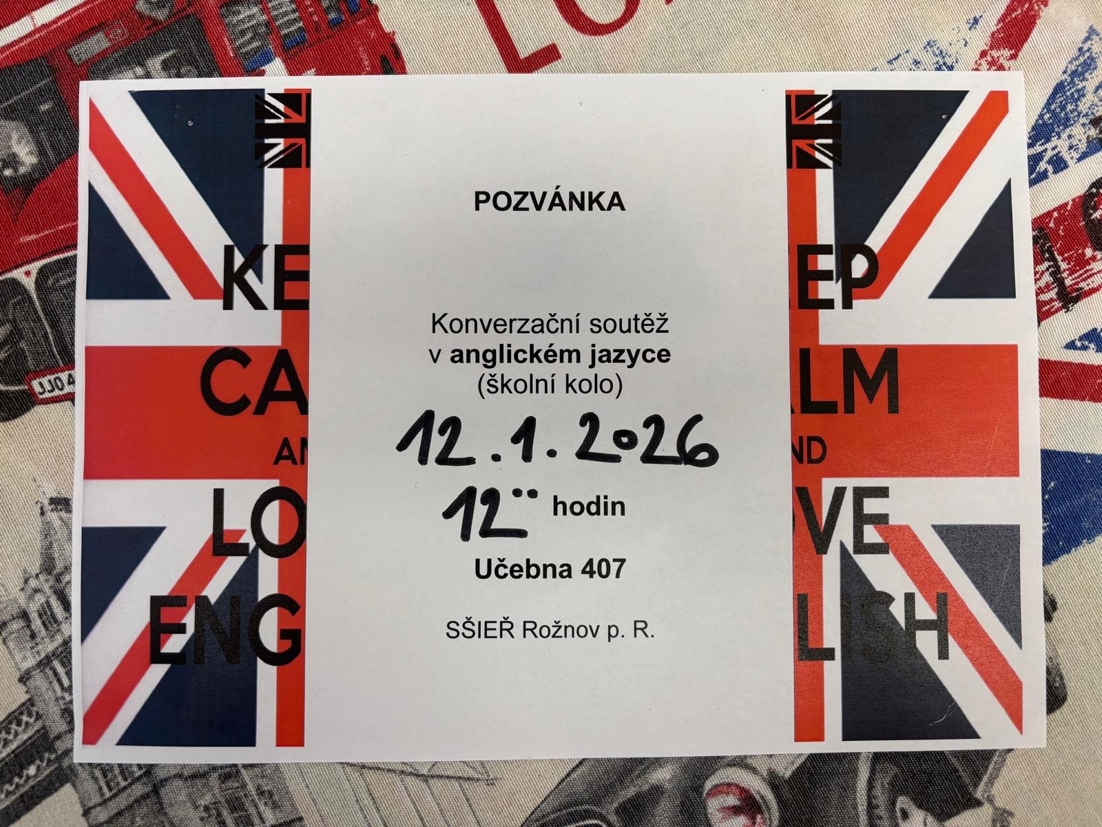 Konverzační soutěž v anglickém jazyce (školní kolo) proběhne v pondělí 12. 1. 2026 od 12:00 hodin v jazykové učebně č. 407.