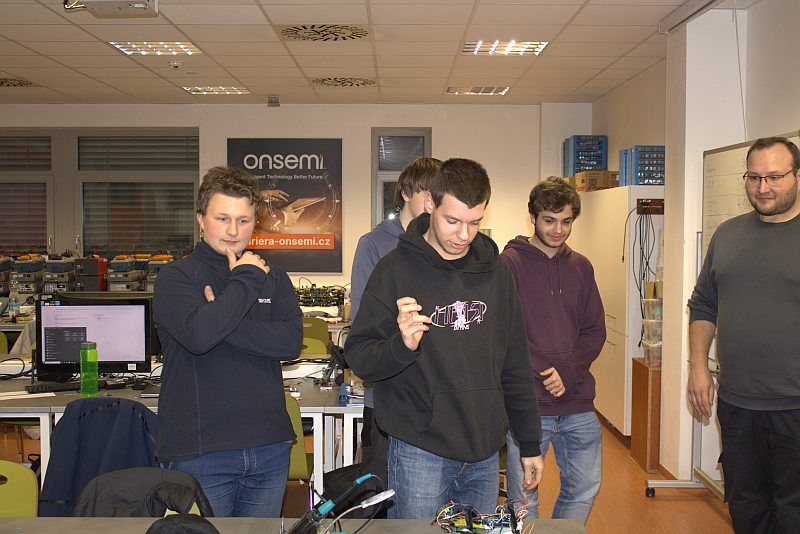 Po slavnostním zahájení se čtyřčlenné týmy přesunuly na jednotlivé katedry, kde obdrželi zadání soutěžních úloh. Na místě pro ně byla připravena pracoviště a vše potřebné pro úspěšné řešení úkolů. A opět to nebyla žádná legrace. Po uplynutí časového limitu, plného úporného přemýšlení nad správnou funkcí, konstrukcí a realizací, následovala prezentace a hodnocení hotových prací. Důležitým kritériem byla samozřejmě funkčnost, spolehlivost a preciznost zpracování zadaného tématu. Oba naše týmy předvedly plně funkční zařízení a v tomto soupeření obstály na výbornou. Předvedly plně funkční zařízení, nicméně o konečném umístění ještě rozhodoval i čas.