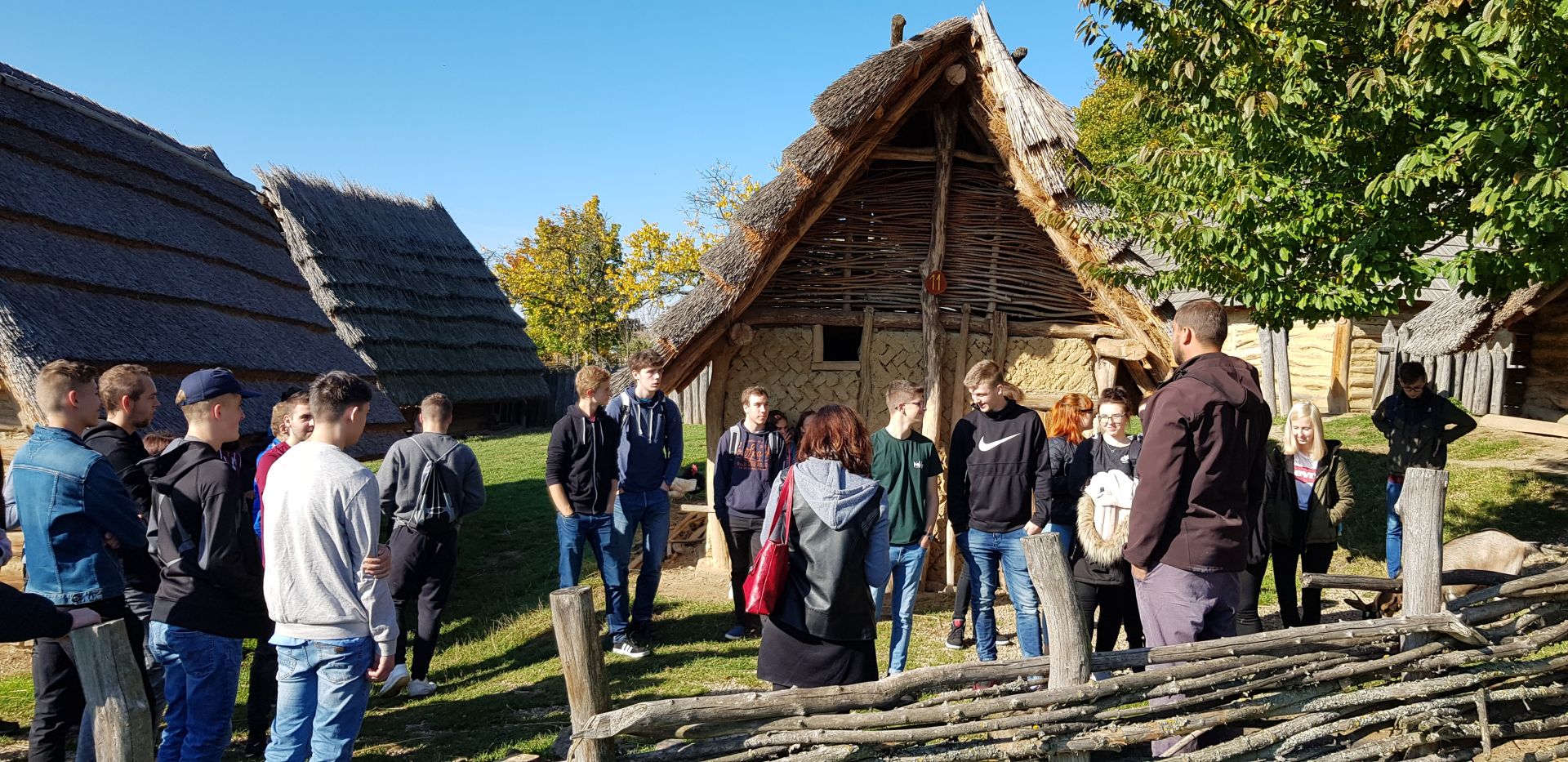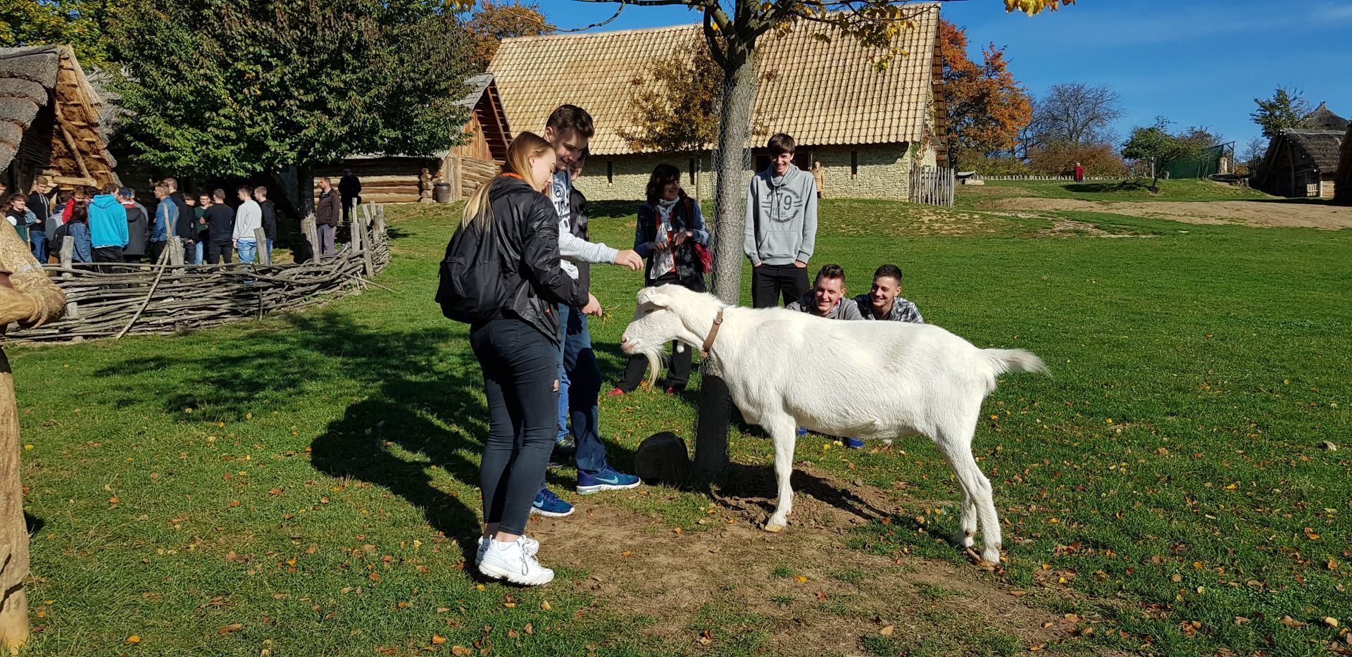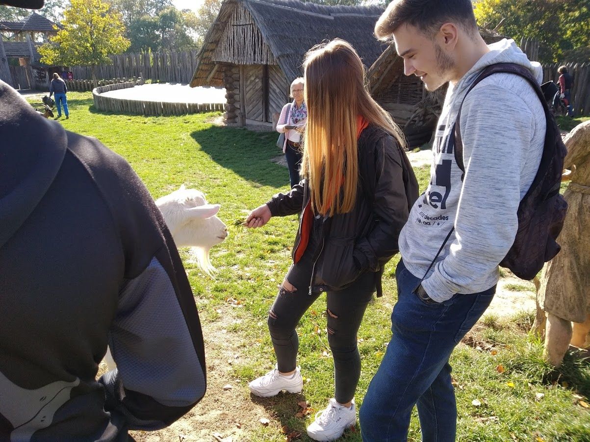 V závěru prohlídky nás čekal knížecí palác a obydlí řemeslníků s ukázkami jejich výrobků. Před opuštěním areálu se s námi rozloučilo početné domácí zvířectvo, jehož vyslanci v pohodě koz nás celou dobu provázeli a dostávalo se jim četných projevů přízně z řad našich studentů.
