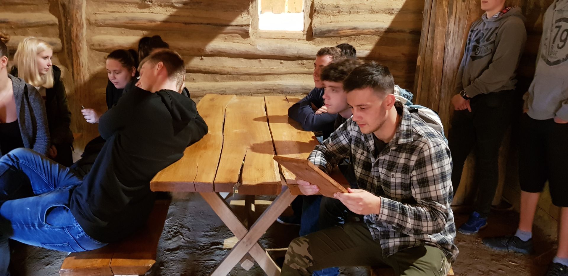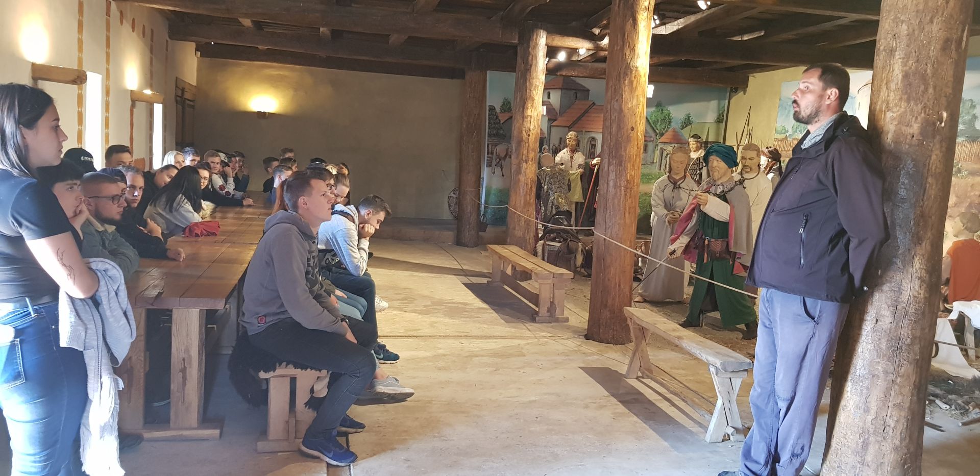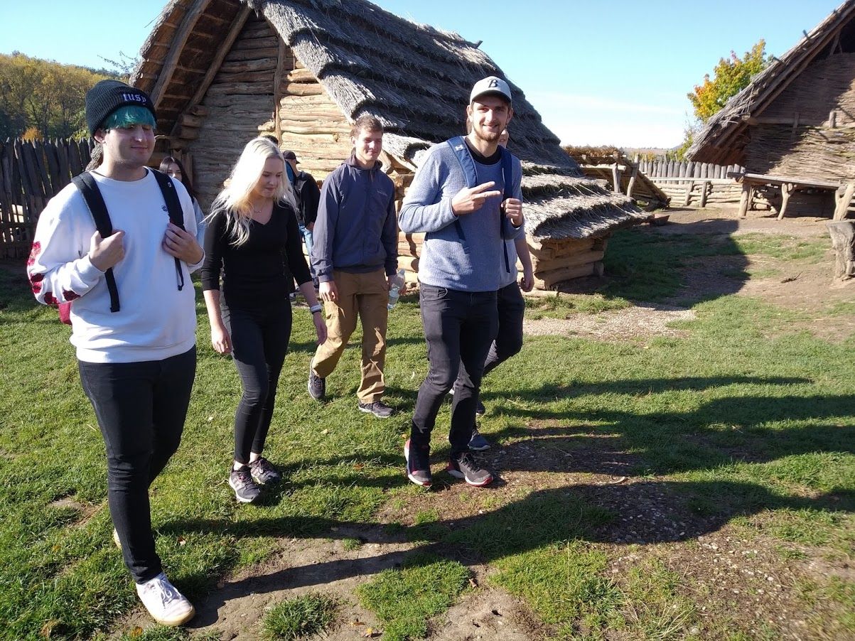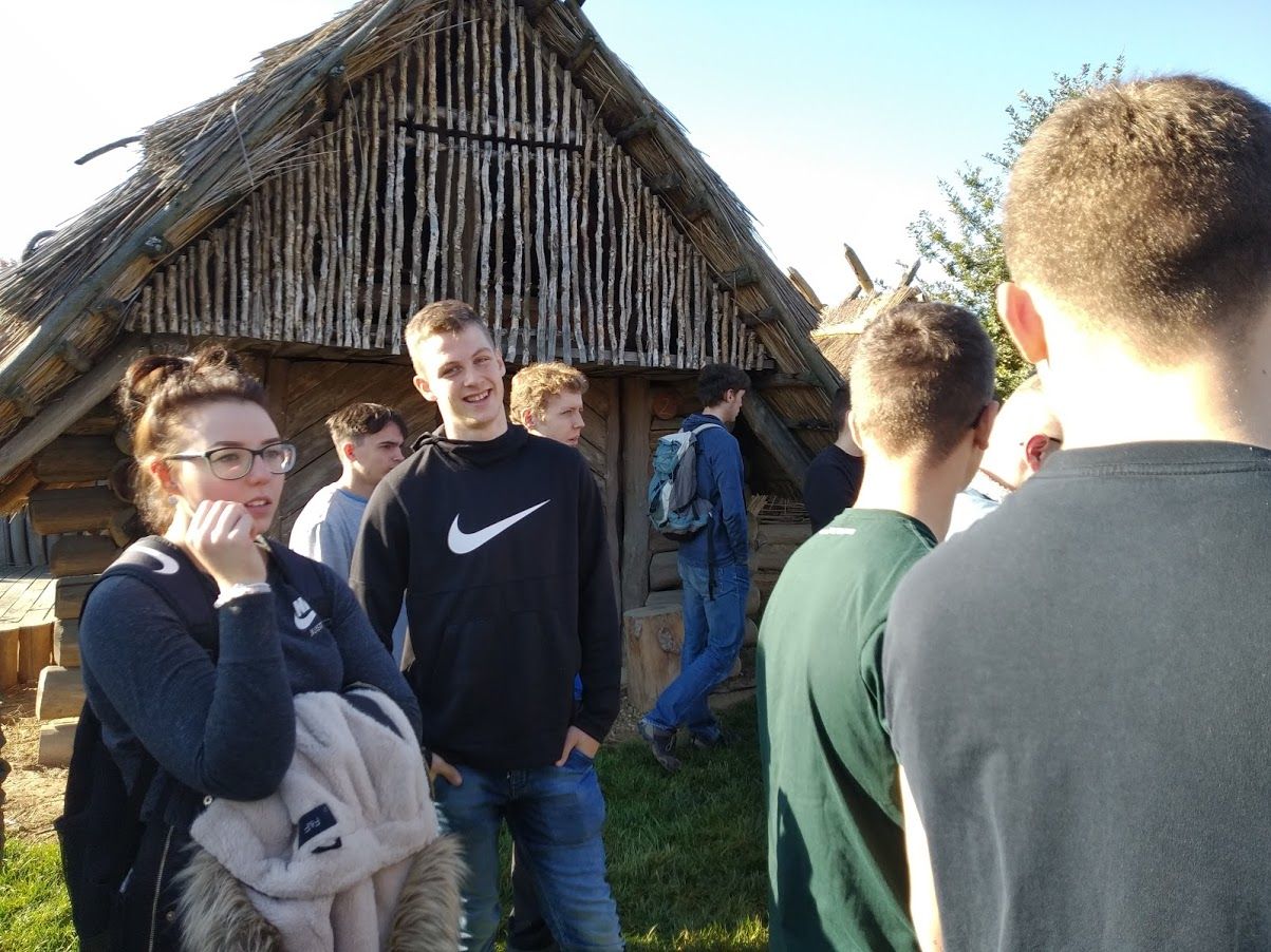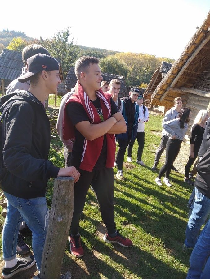 Cílem výpravy byl archeoskanzen v Modré, který je názornou ukázkou velkomoravského sídliště. Celá prohlídka byla zaměřena především na praktickou stránku života lidí v době 9. a 10. století. Všichni si na vlastní kůži vyzkoušeli, jaké pohodlí poskytovaly polozemnice. I žáci menšího vzrůstu museli výrazně sklonit hlavu, aby do obydlí našich dávných předků vůbec mohli vstoupit.