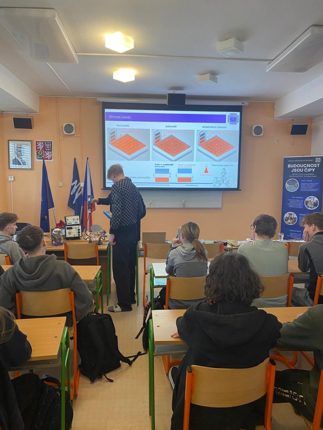 z VUT Brno, připravili populárně naučnou formou vedené odborné přednášky na téma Příběh elektronu, Integrované obvody všude kolem nás či Fyzikální show o polovodičích.