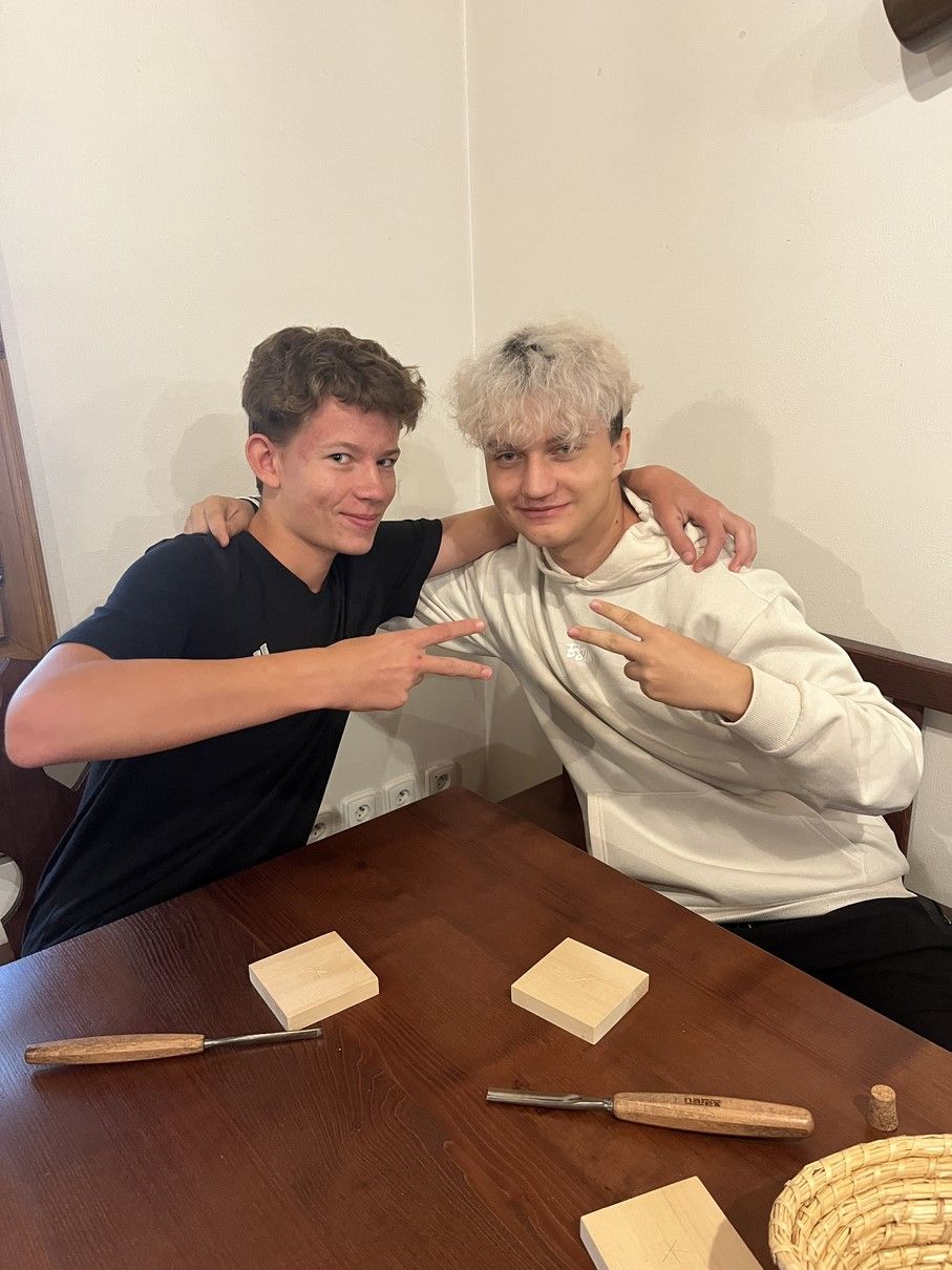 Měli jsme rovněž možnost vyzkoušet si zdobení dřeva vrubořezem.