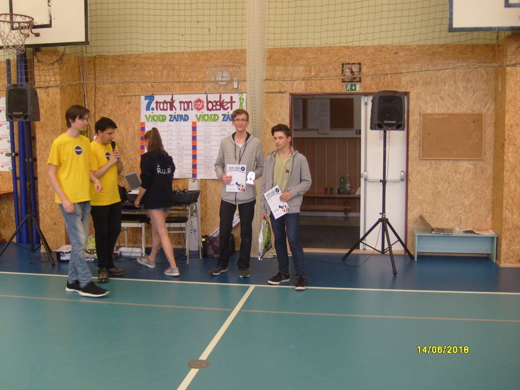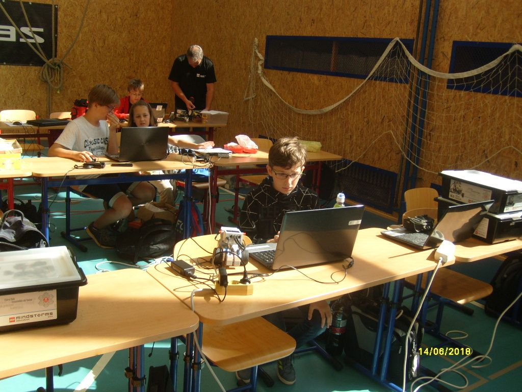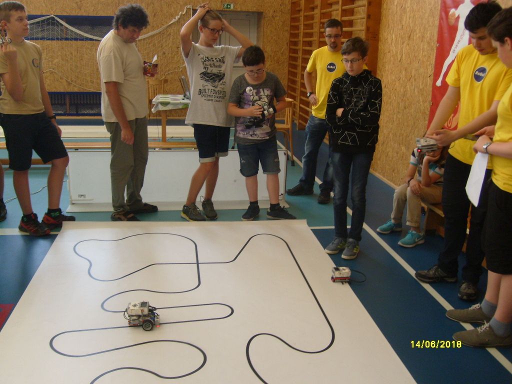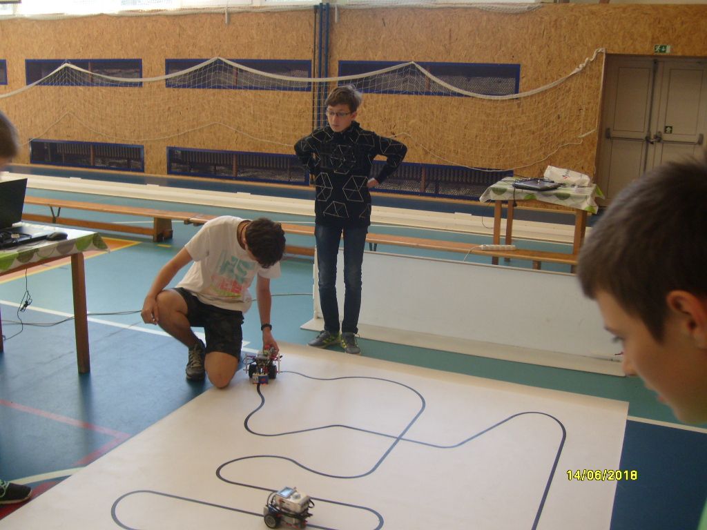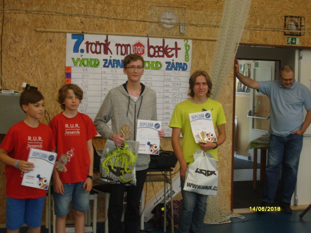Tradiční soutěž robotů v Jeseníku se konala 15. 6. 2018 v tělocvičně místního gymnázia. Letos náš kroužek reprezentovali dva žáci ZŠ Tomáš Macura a nováček Adam Kročák a zkušený středoškolák Martin Procházka.