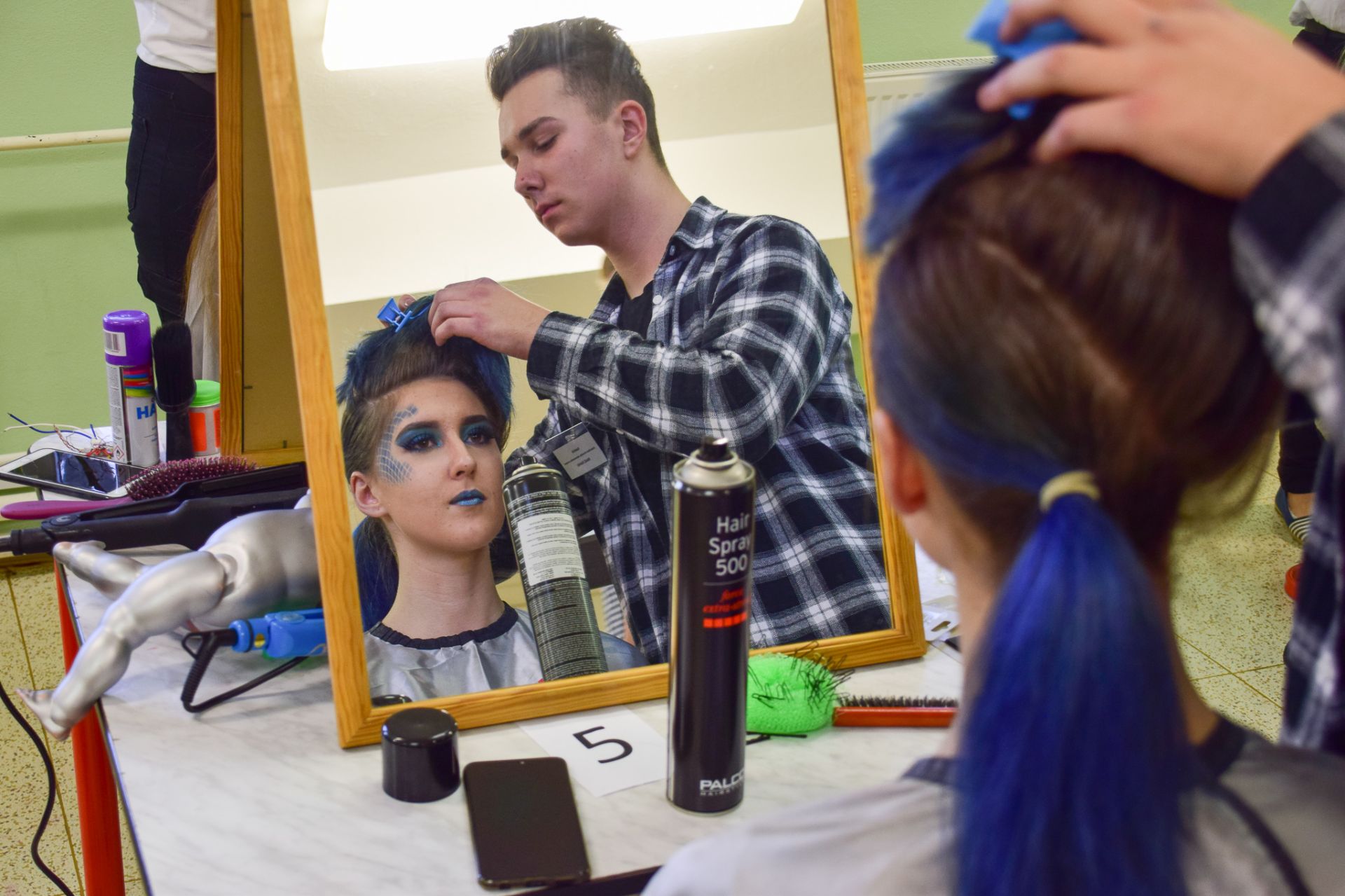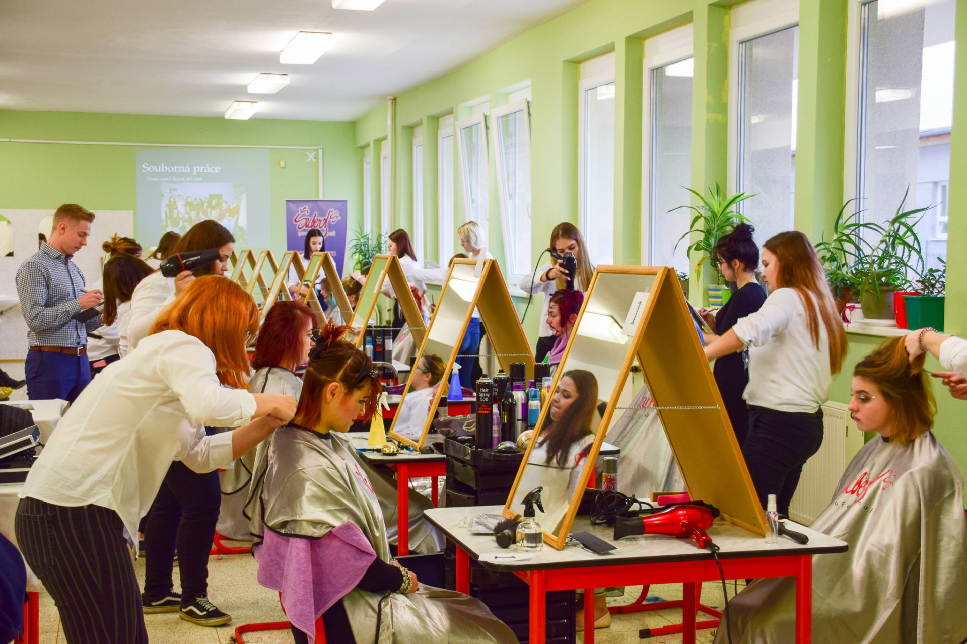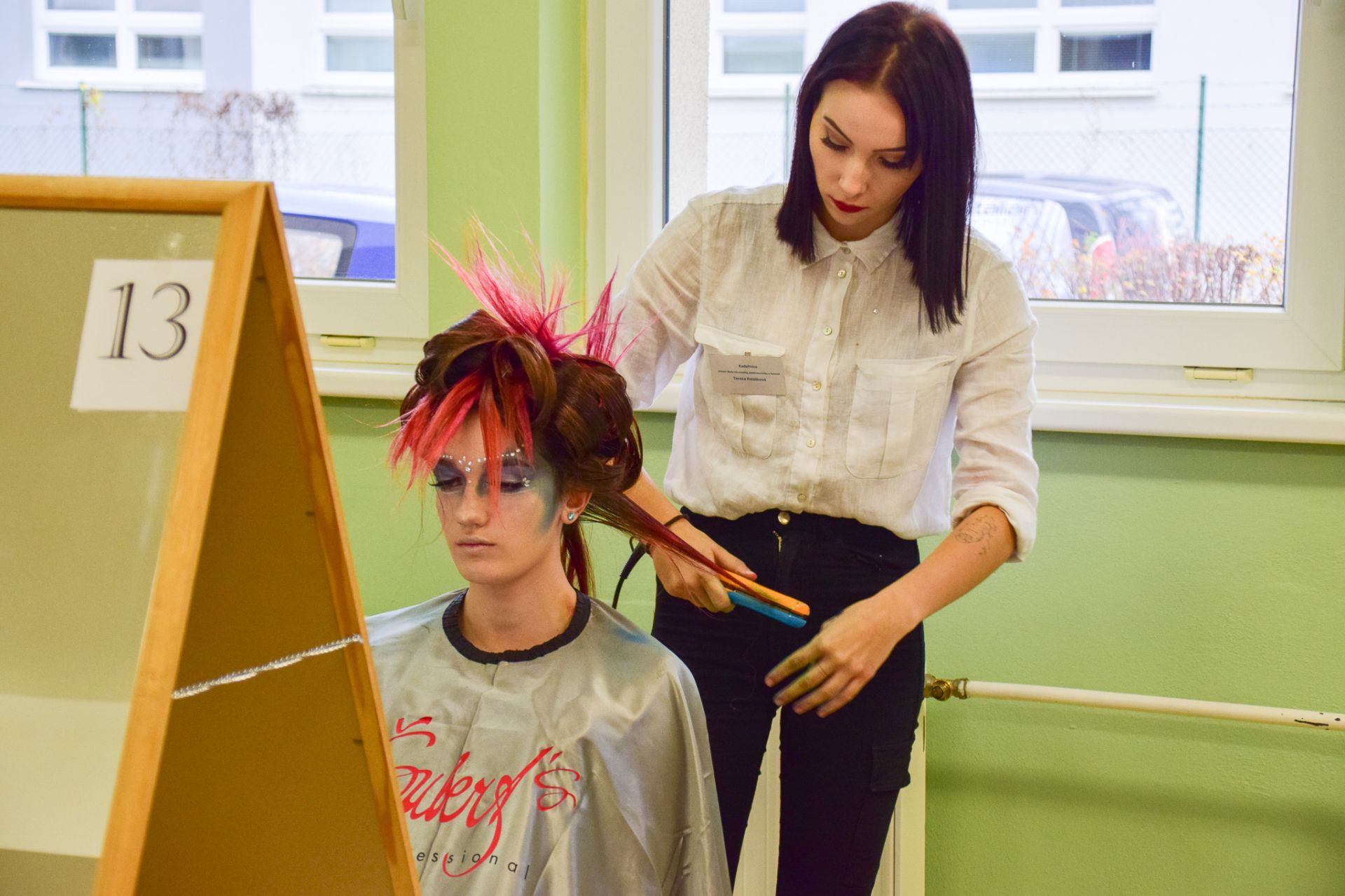 V první a druhé disciplíně se představily žákyně třetího ročníku oboru kadeřník, v závěrečné, třetí disciplíně, je pak doplnily i žákyně 2. ročníku.