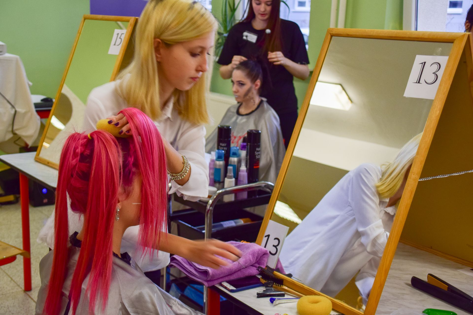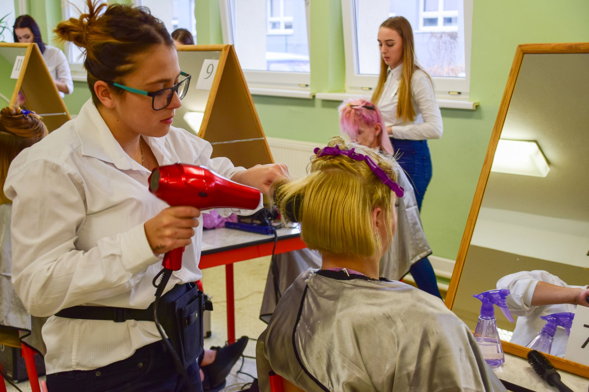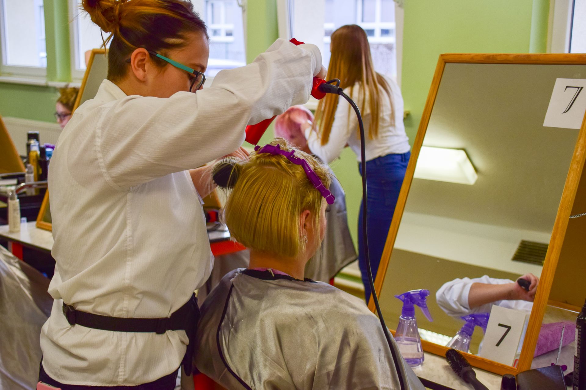 V první a druhé disciplíně se představily žákyně třetího ročníku oboru kadeřník, v závěrečné, třetí disciplíně, je pak doplnily i žákyně 2. ročníku.