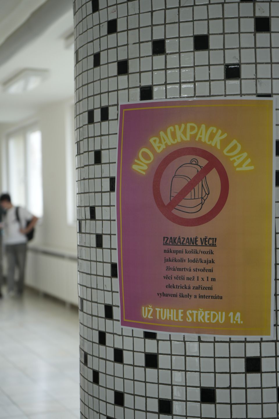 Dne 1.4 2026 se žákovský parlament školy rozhodl na hlavní budově zorganizovat studenty po celém světe oblíbený No Backpack Day (Den bez batohu).