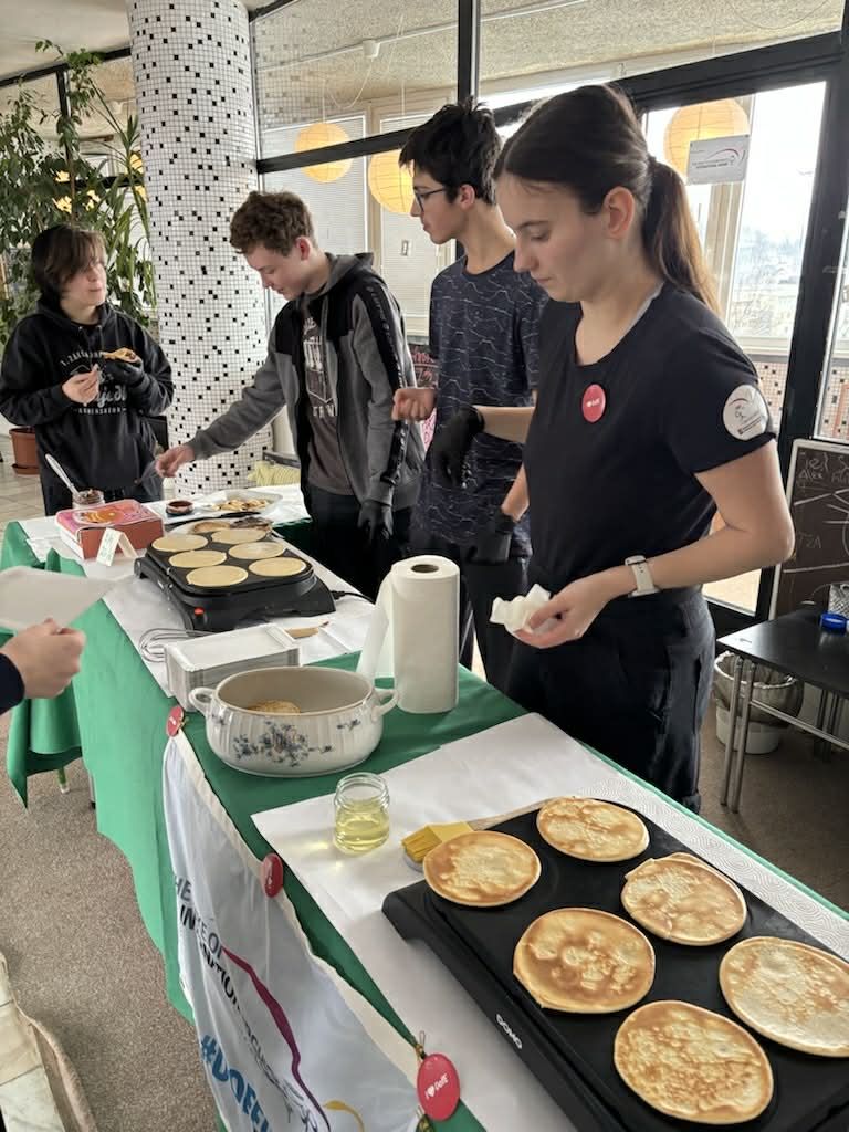 O přestávkách si žáci mohli pochutnat na čerstvě připravených palačinkách, které pro své spolužáky s nadšením chystali sami studenti.