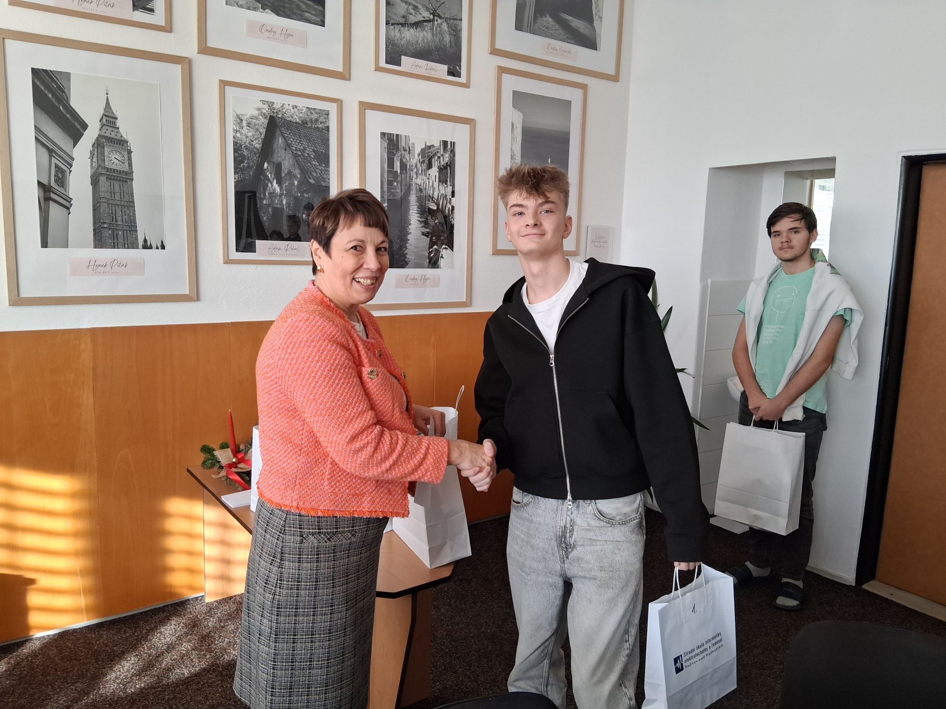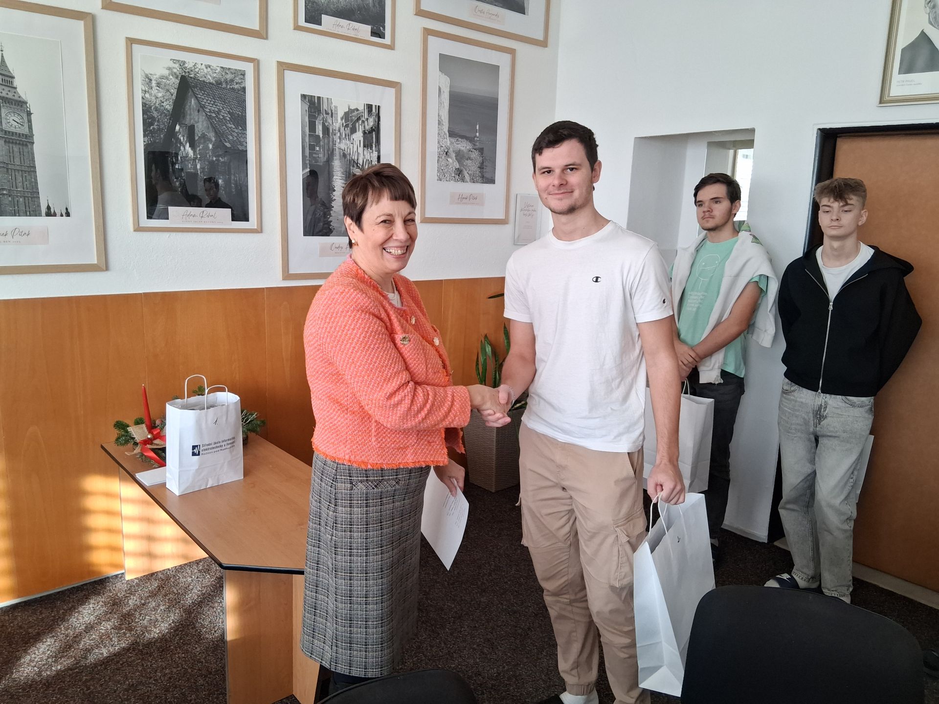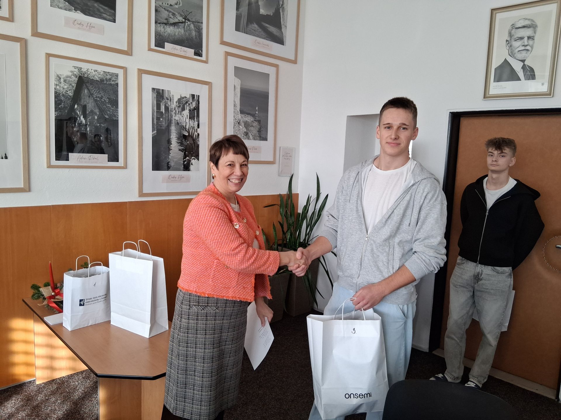 Ve středu dne 10. 12. 2025 proběhlo v ředitelně školy předávání ocenění nejlepším studentům školy zapojeným do soutěže o grafický návrh školního PF2026 a PF2027. Soutěž probíhala podle zadání zveřejněného v propozicích k soutěži a přesně daných soutěžních kritérií.