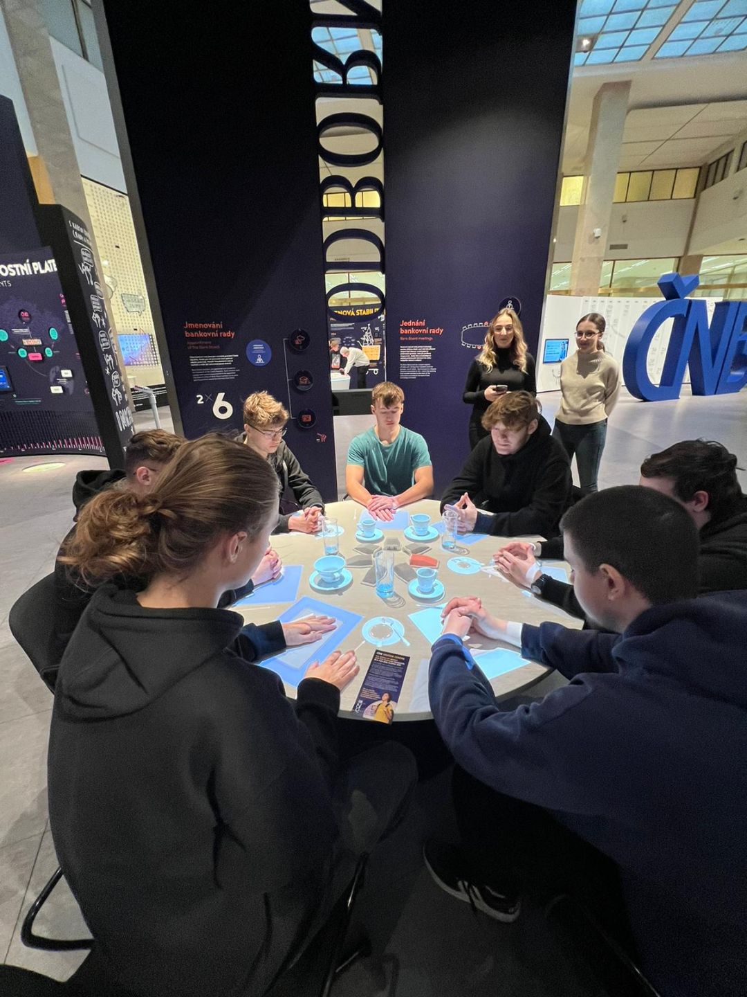 Dalším bodem programu byla exkurze do ČNB expozice a výukový program „Lidé a peníze“ interaktivní přednáška o praktických informacích ze světa peněz zaměřená především na českou a československou měnovou historii, centrální bankovnictví v mezinárodním kontextu cenovou a finanční stabilitu, plynulost peněžního oběhu a především technické zabezpečení, využití prostředků ICT v systému bankovnictví.
