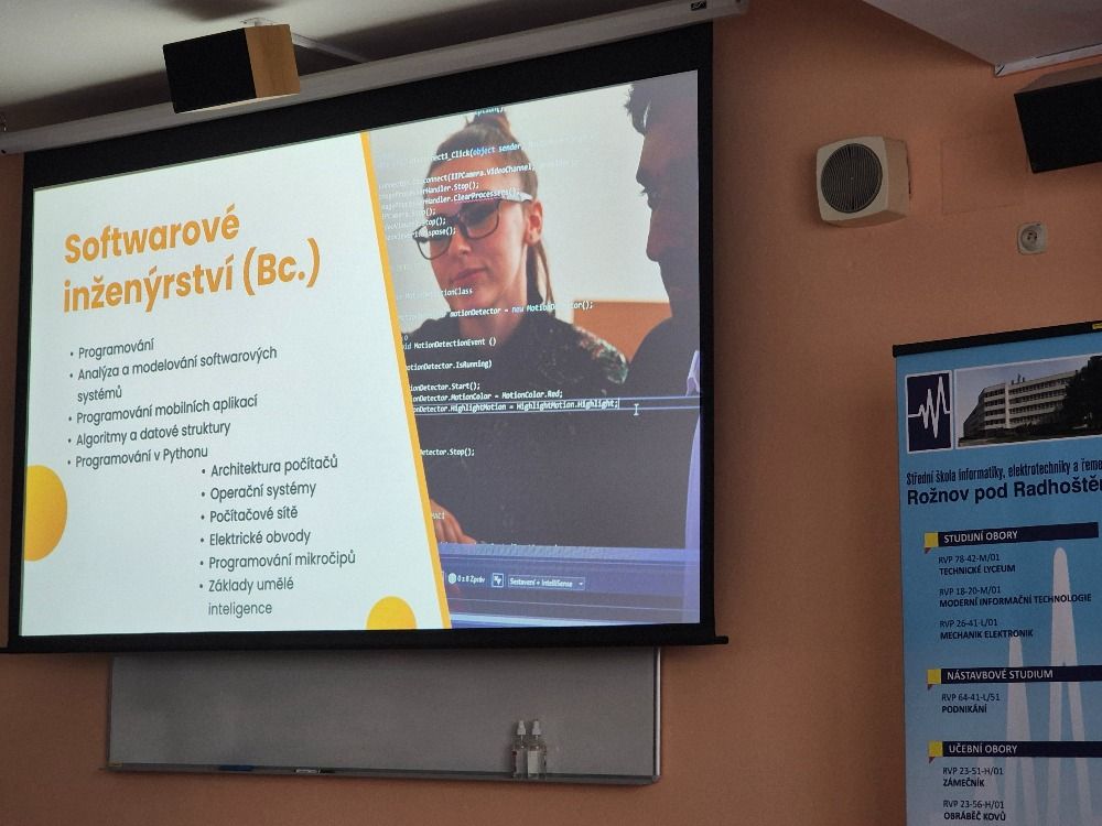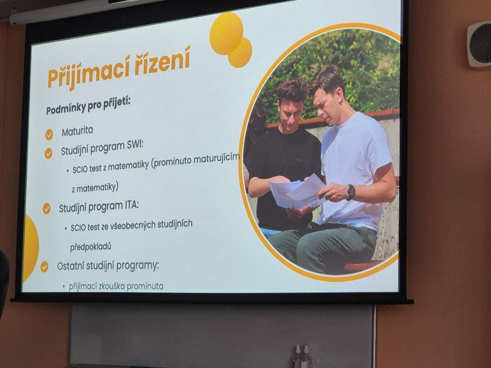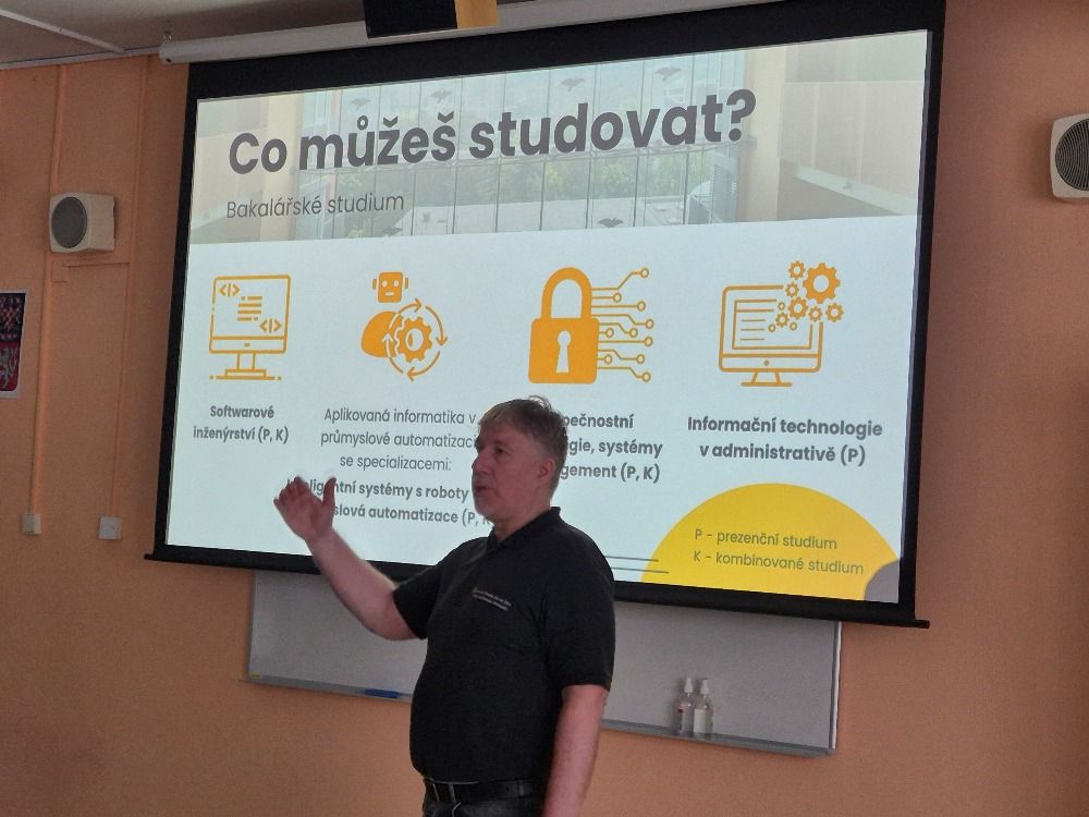 Dne 5. 2. 2026 měli naši studenti a studentky oboru Moderní informační technologie možnost absolvovat interaktivní prezentaci pana ing.Tomáše Sysaly, PhD. z Univerzity Tomáše Bati ve Zlíně, který přijel našim maturantům představit studijní obory a zaměření Fakulty aplikované informatiky.