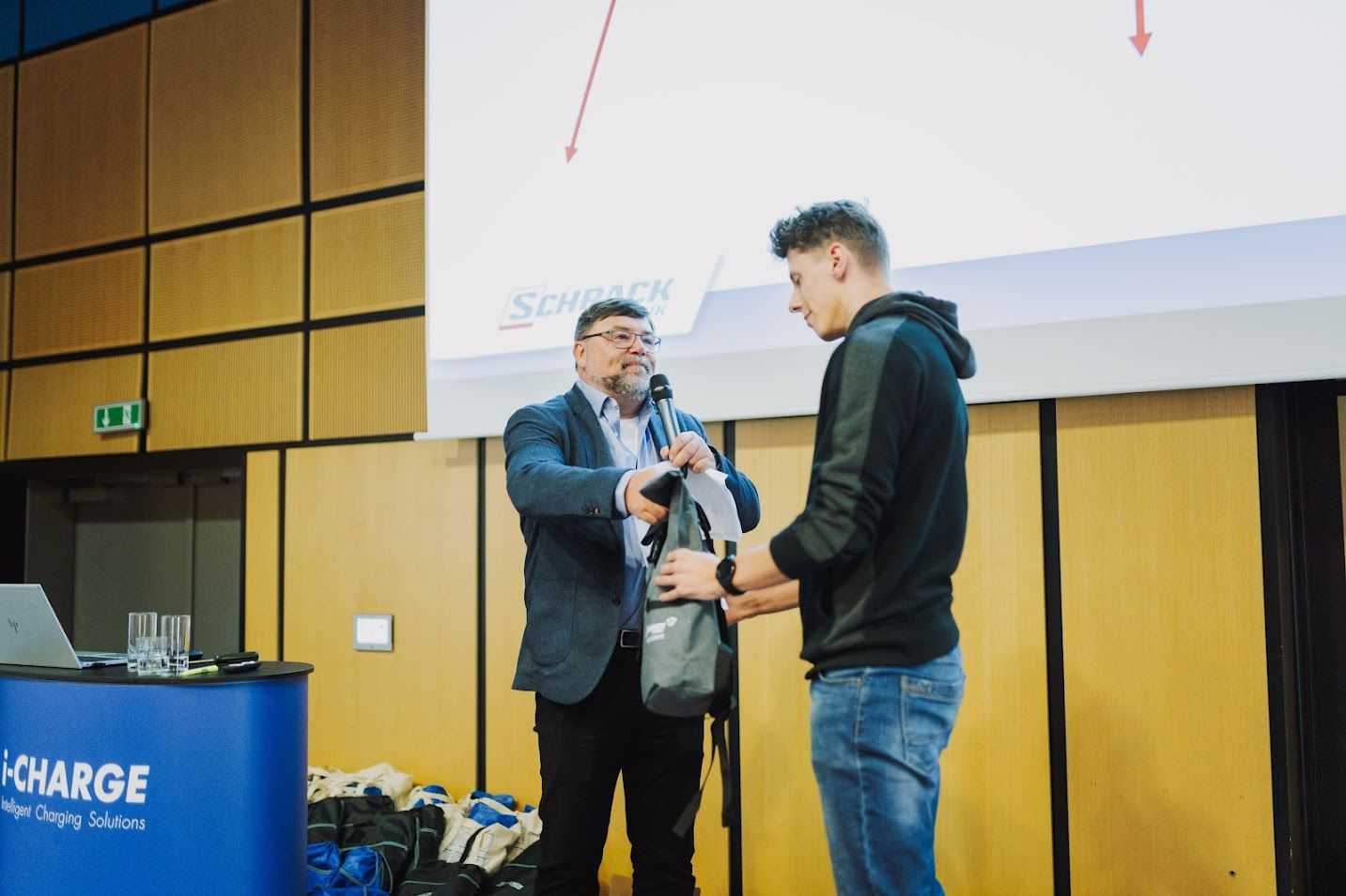 K dobré propagaci naší školy v rámci těchto Studentských informačních dnů přispěl i učitel odborného výcviku Eduard Vlček. Kromě toho, že vykonával funkci porotce v Ostravě, vystoupil i na odborném fóru v Hradci Králové se svou přednáškou zabývající se problematikou nabíjecích stanic pro elektromobily. Svým vystoupením přispěl k tomu, že se naše škola úspěšně prezentovala na tak velké akci, jako jsou Info dny firmy Schrack Technik.
