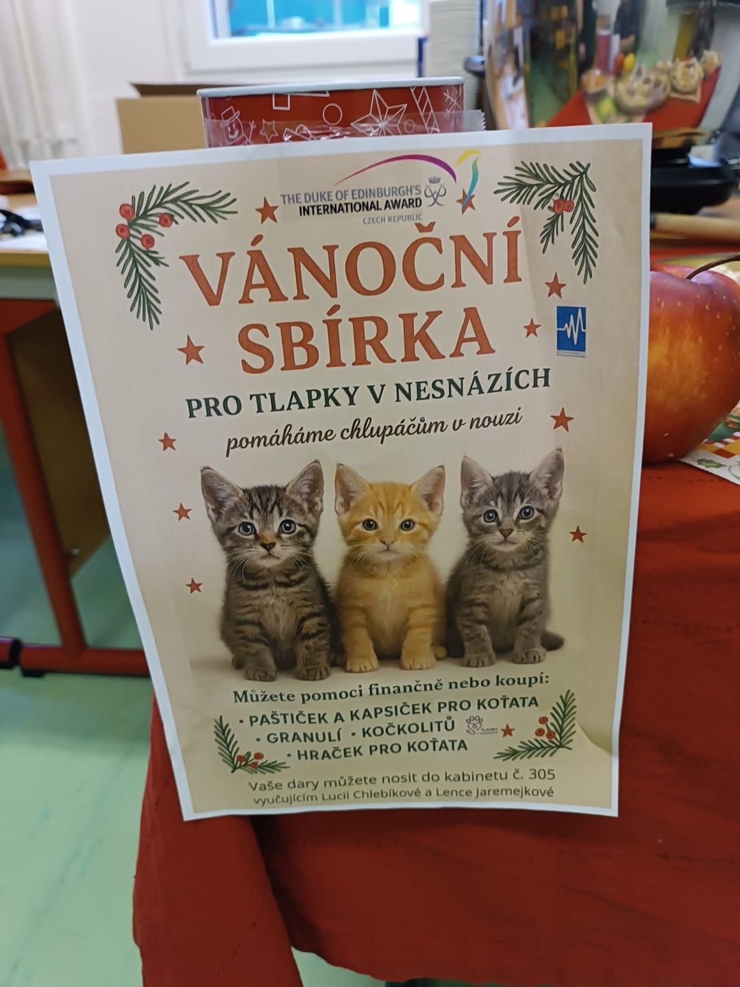 V rámci posledních dnů ve škole měli žáci také možnost přispět do sbírky pro Tlapky v nesnázích  – organizaci z Valašska, která pomáhá chlupačům v nouzi. Sbírka probíhala po celý prosinec.