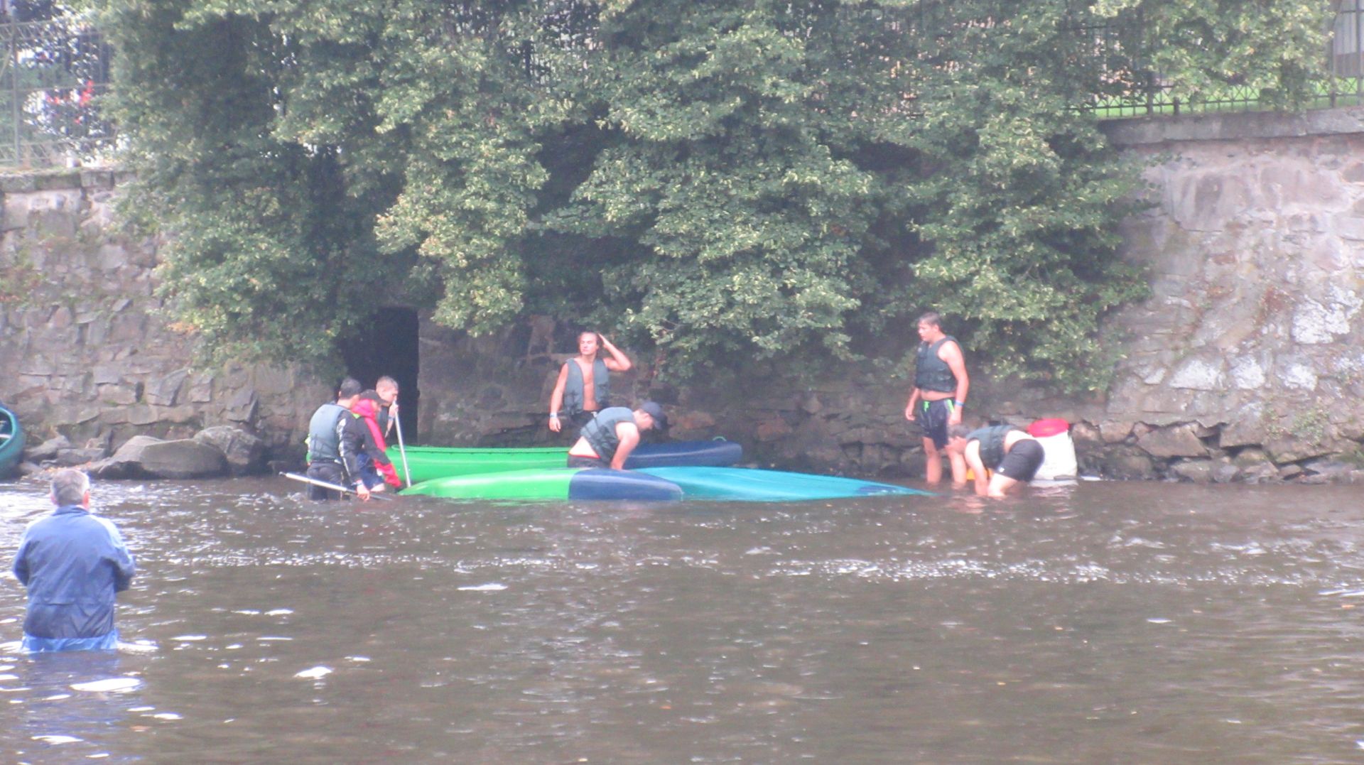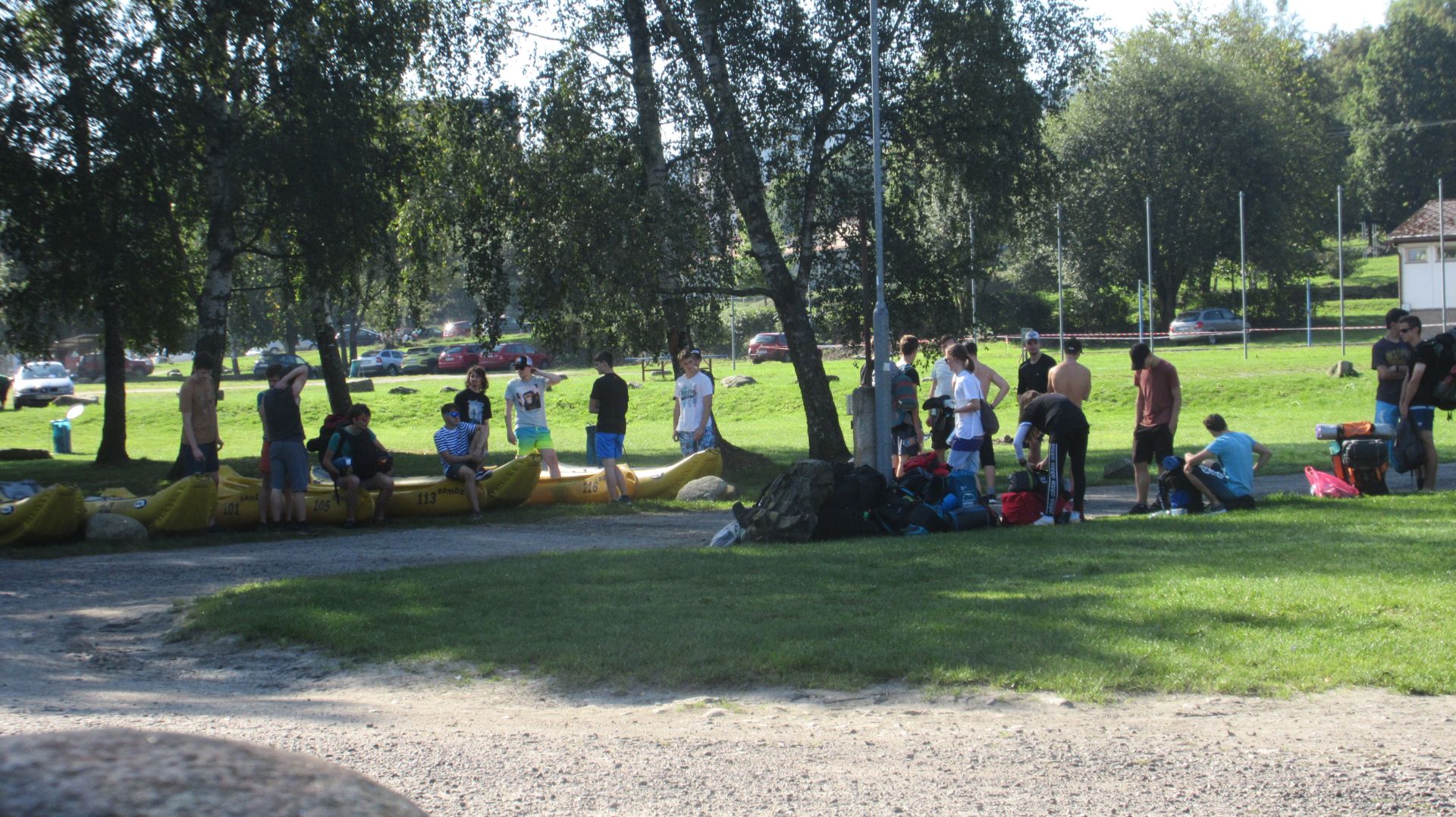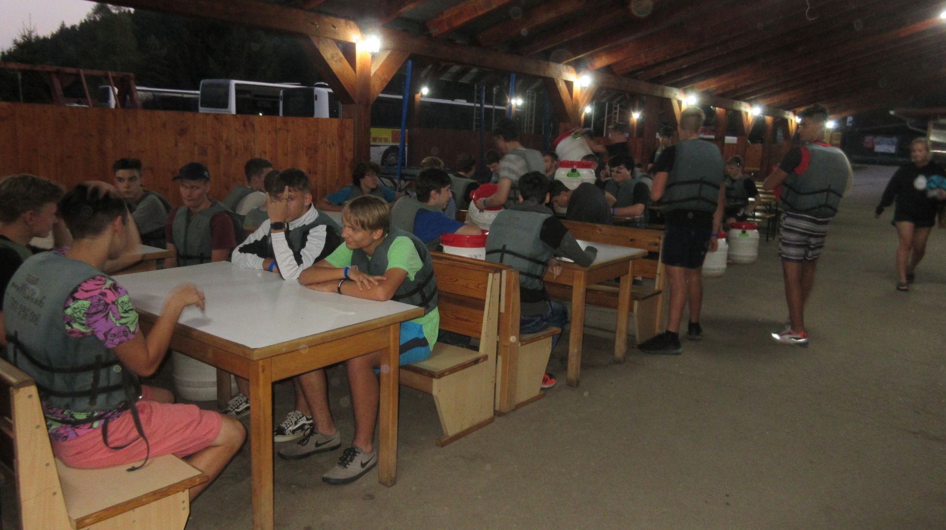Předpověď počasí nelhala, večer hustě pršelo, ale ráno jen mžilo, což vodákům tak nevadí. Projeli jsme všechny krumlovské jezy, v polovině cesty jsme se zastavili v občerstvení U Milana na opékanou klobásu nebo hermelín, ohřáli se u ohně a za dvě hodiny dorazili do kempu Zlatá Koruna. Následovalo převlečení do suchého prádla a cesta do kempu U Vikinga, místa našeho ubytování. Předposlední společně strávený den uplynul jako voda, ještě následovaly nějaké sportovní aktivity a balení na cestu domů.