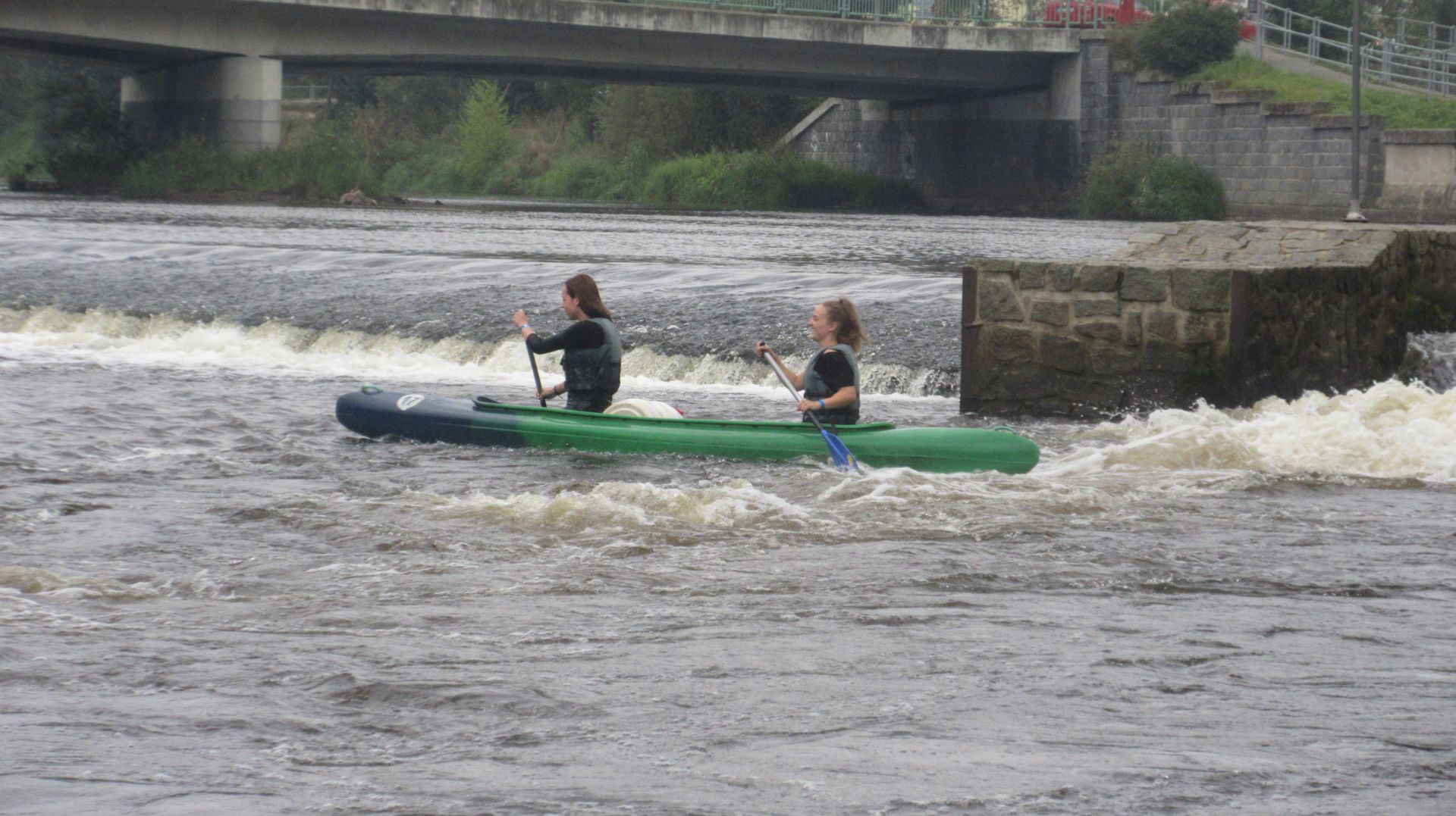 Ve středu nás čekala nejkratší etapa celého kurzu se zajímavou prohlídkou jednoho z nejnavštěvovanějších měst naší republiky – Českého Krumlova. Počasí doprovází ještě letní teploty, nálada je výtečná. Po příjezdu do kempu Nové Spolí na žáky čekalo překvapení. Všichni si mohli vyzkoušet jízdu na paddleboardingu a kajaku.