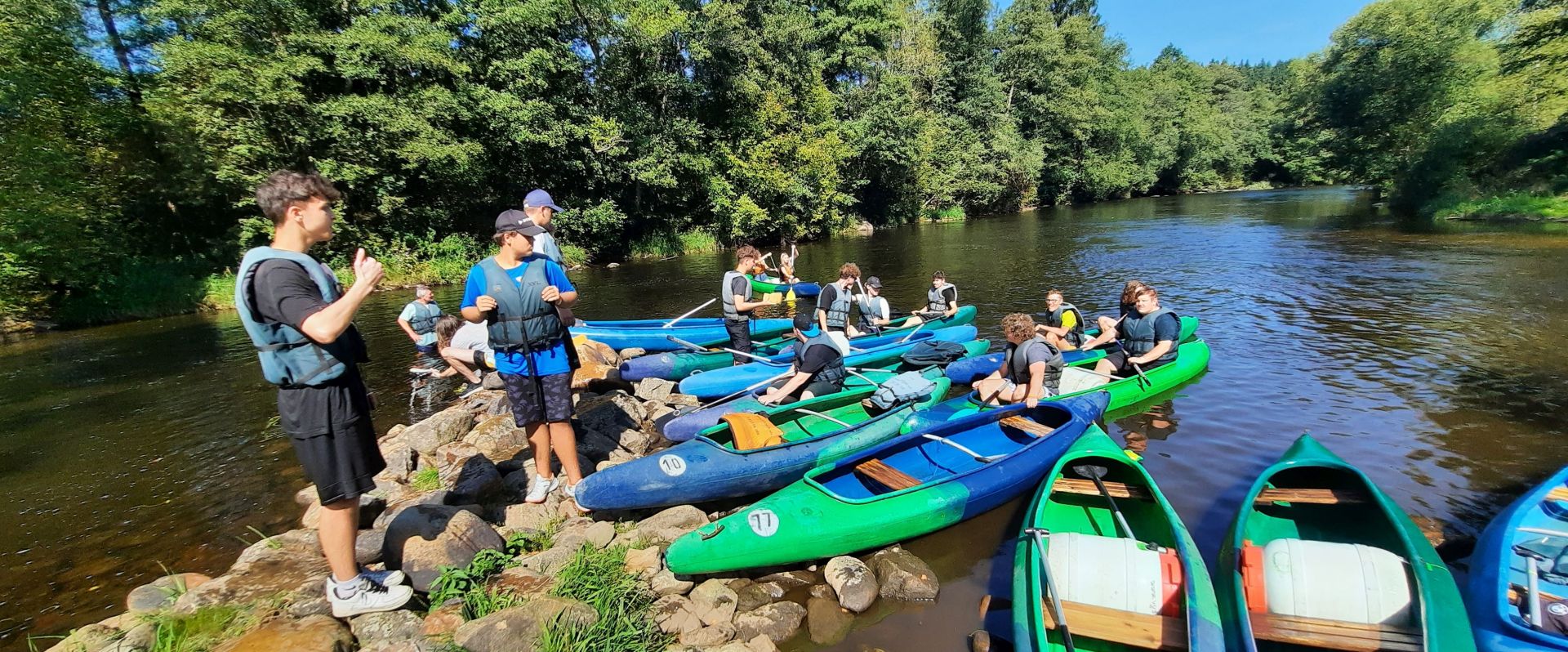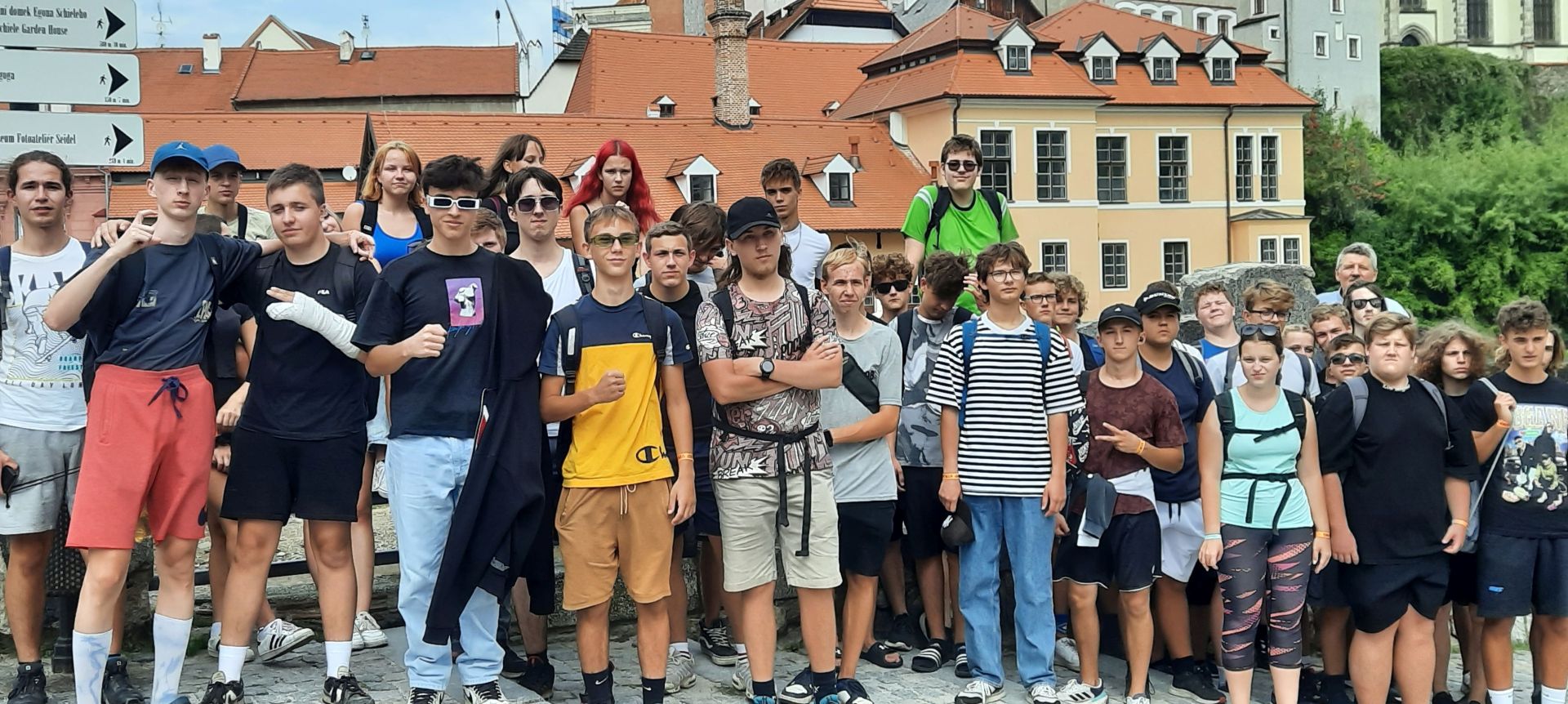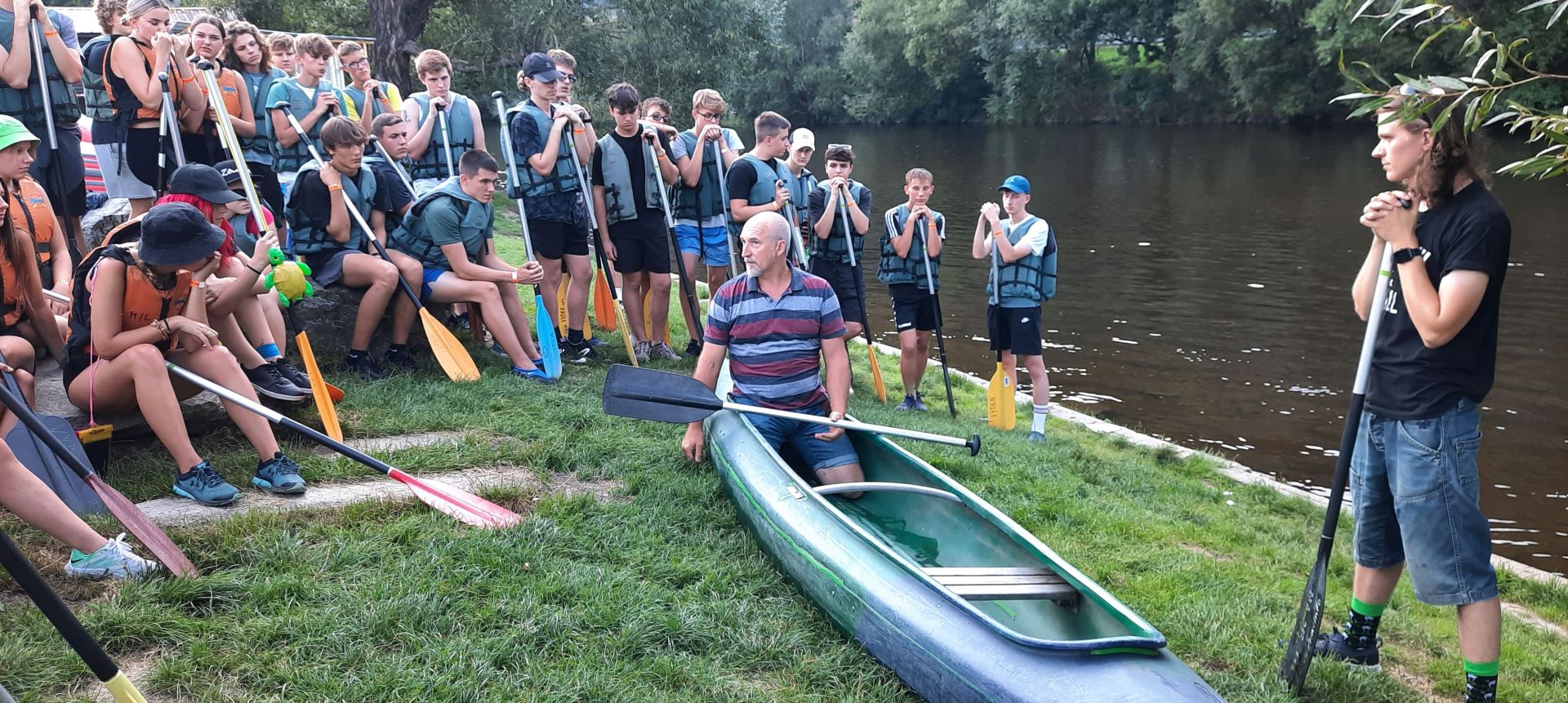 Za letního počasí (28 ºC) vyráží 45 žáků naší školy na 400 km dlouhou cestu do jižních Čech, do kempu U Vikinga, který se na týden stane místem pobytu a výjezdu na vytýčené vodní etapy.