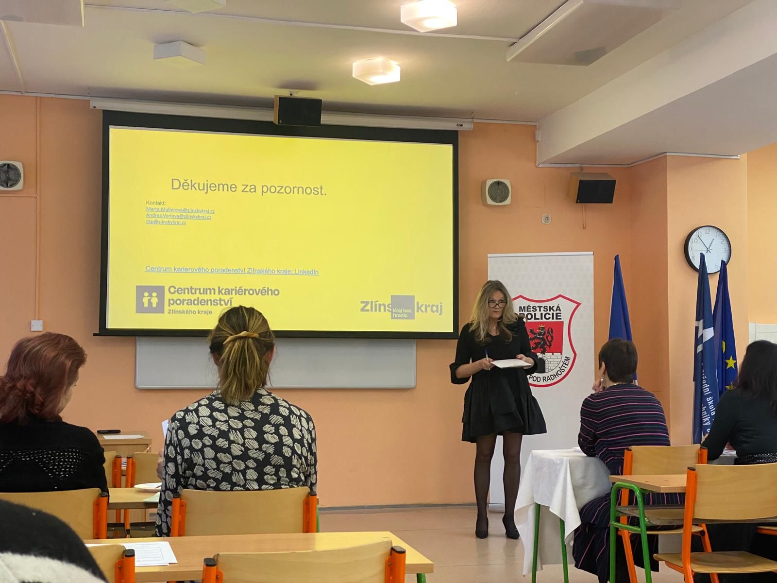 Také poslední část setkání charakterizovalo téma nabízení pomoci, konkrétně prostřednictvím nesmírně užitečného kariérového poradenství. Paní Marta Müllerová a Andrea Vorlová z Centra kariérového poradenství na „rožnovskou střední“ opět přinesly další novinky, které jejich centrum nabízí či které jsou v plánu na nejbližší měsíce.