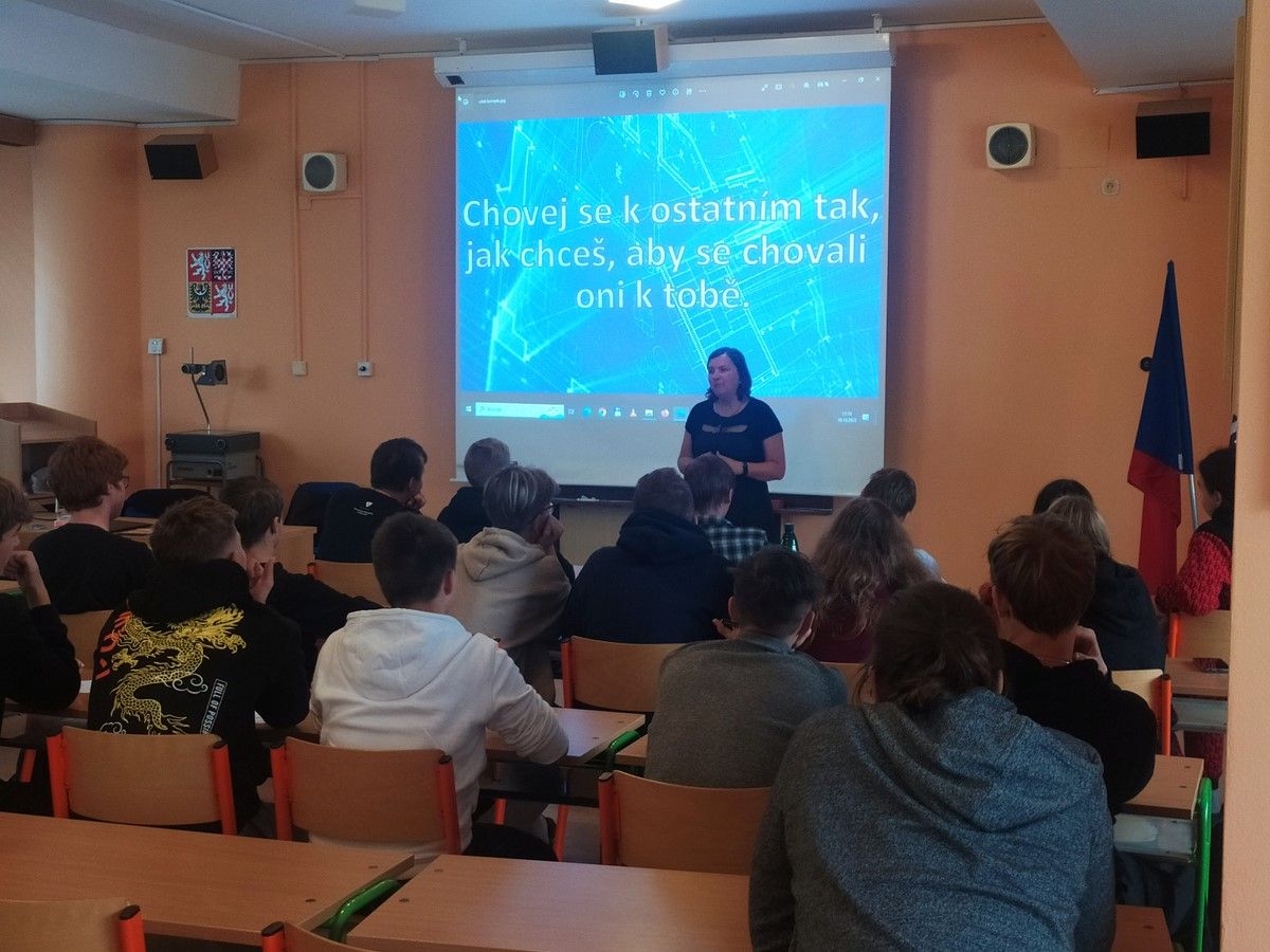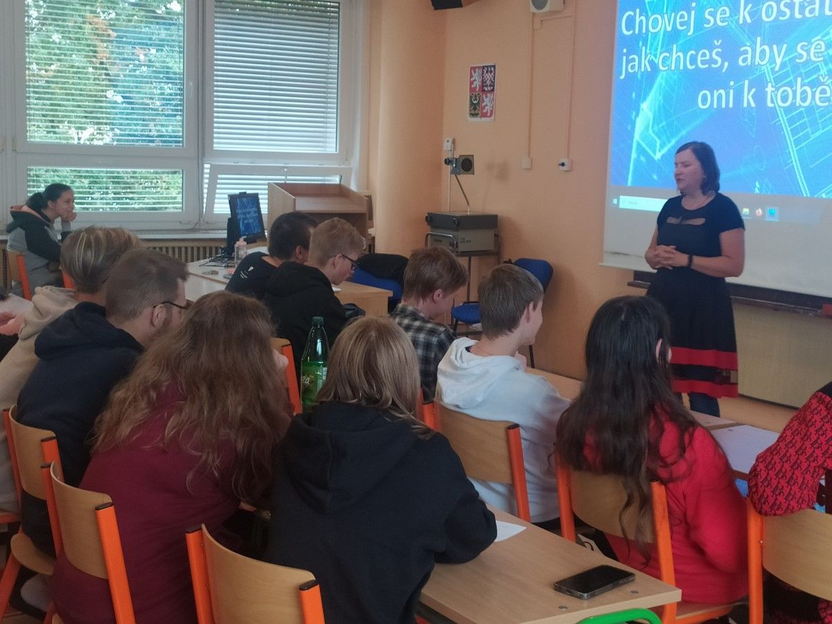 V září a říjnu proběhly ve všech 1. ročnících besedy na téma vztahy v kolektivu navazující na adaptační kurz.