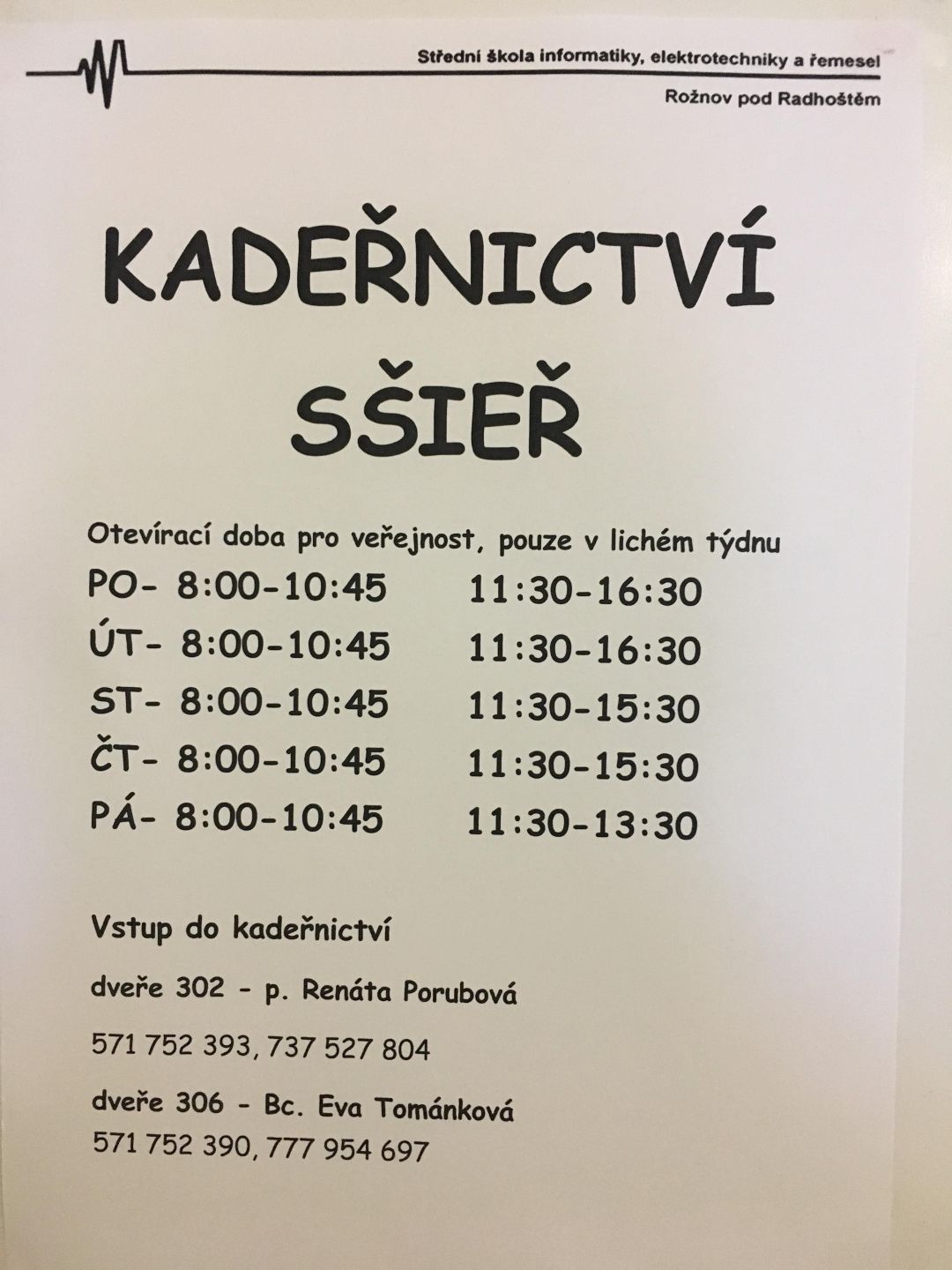 Otevírací doba kadeřnické provozovny pro veřejnost.