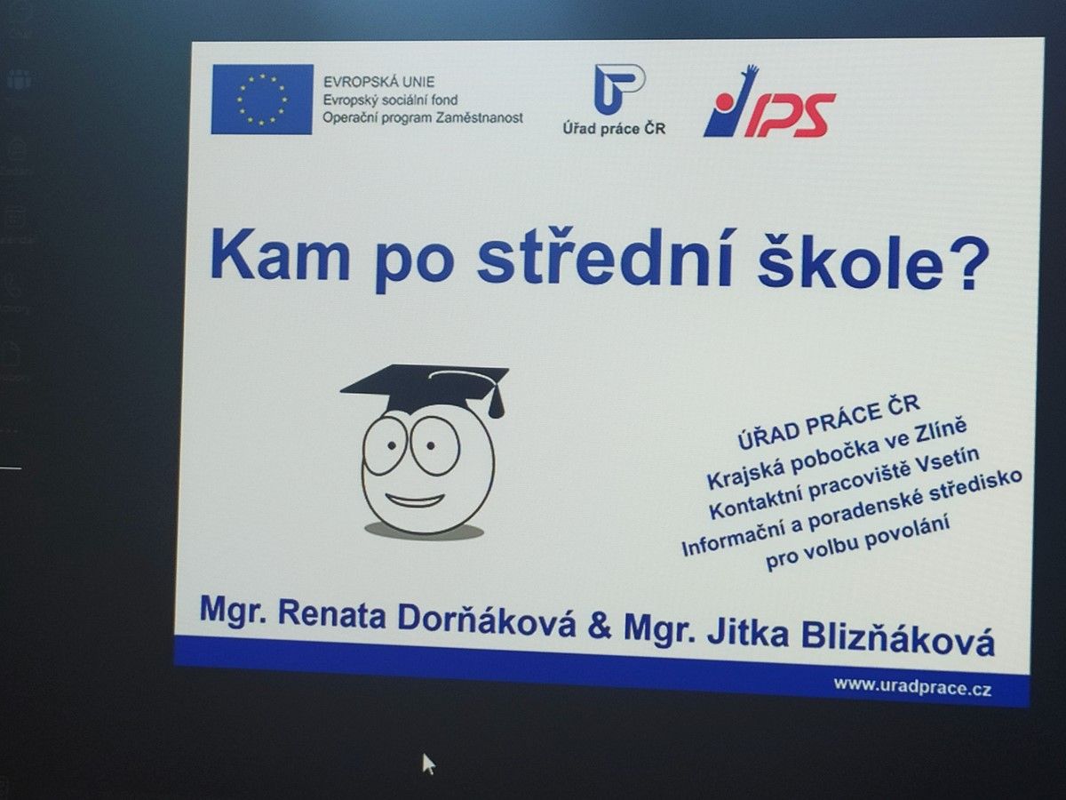 přečíst aktualituBrzy nastane období, kdy se letošní třeťáci budou rozhodovat kam po maturitě. On-line přednáška uskutečněná ve spolupráci s úřadem práce Vsetín pro třídy IT3A, IT3.B a IT3C by toto rozhodování mohla studentům trochu usnadnit.