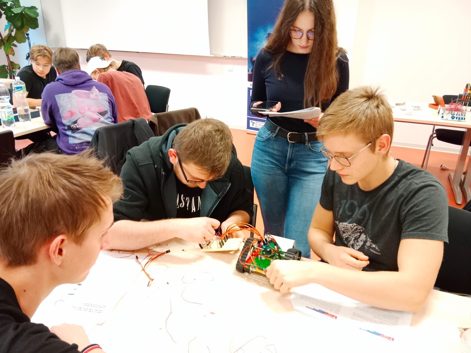 Naše týmy si vybraly dvě zajímavá témata: tým třeťáků ve složení: Marek Gajdoš, Jan Šimurda, Marie Vicenová a David Stančík si zvolil téma Pásovec sledující světlo a druhý tým čtvrťáků: Marek Šádek, Dominik Urban, Daniel Matúšů a Vít Adamec si vybral téma Závod se sluncem. Průběh celé soutěže i vlastní realizace soutěžní úlohy byla pro všechny zúčastněné zajímavou a atraktivní zkušeností. Našim žákům patří pochvala za vzornou reprezentaci školy. Umístění týmu čtvrťáků na 3. místě a týmu třeťáků na 4. místě ve svých kategoriích je pro žáky nejen úspěchem, ale i platnou vstupenkou ke studiu na FEKT VUT bez přijímaček. A účast v soutěži je samozřejmě i výzvou do příštího jubilejního 10. ročníku, kam už se po letošní zkušenosti žáci těší.