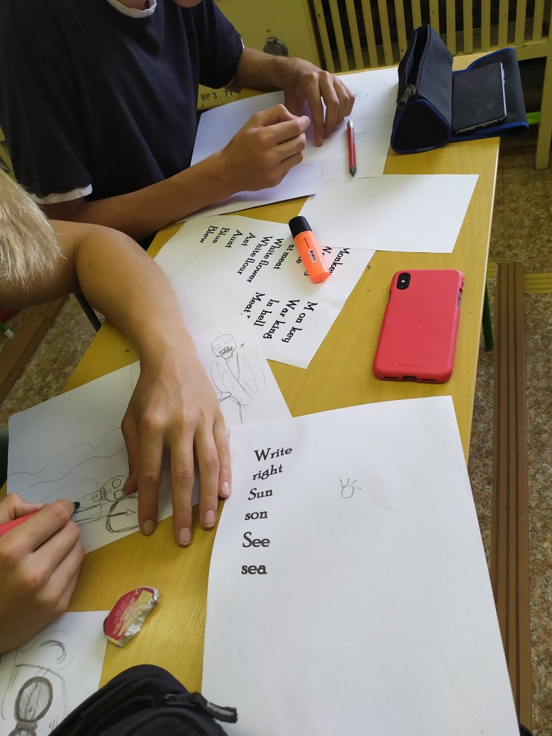 Žáci se před letními prázdninami nechali inspirovat filmovým dokumentem Mr. Kriss. Po zhlédnutí vymýšleli anglické slovní hříčky a namalovali své vlastní akvarely.
