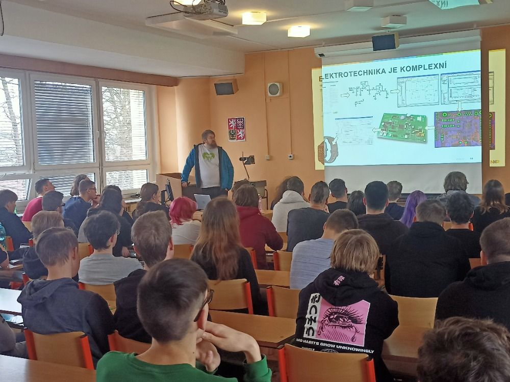 přečíst aktualituAbsolvent naší školy, Ing. Pavel Michlíček, pozdější absolvent oboru Kybernetika, automatizace a měření na VUT Brno, v současné době zaměstnanec partnerské firmy NXP Semiconductor na pozici Field Application Engineer, nás tentokrát navštívil z toho důvodu, aby seznámil v rámci své odborné přednášky žáky maturitních ročníku oboru MIT s možnostmi následného pomaturitního studia.