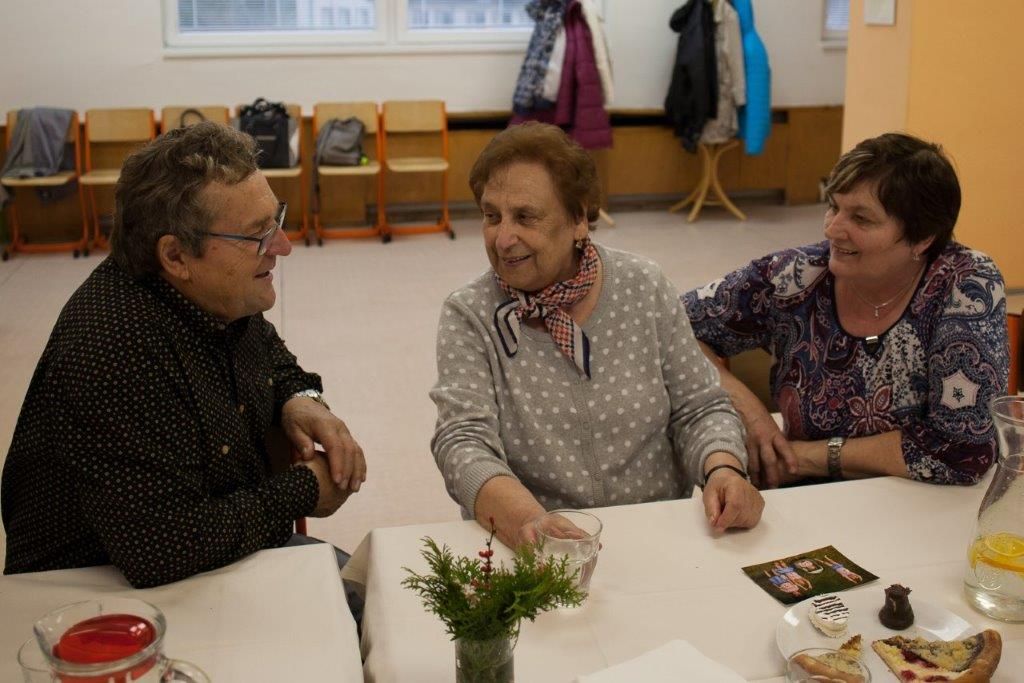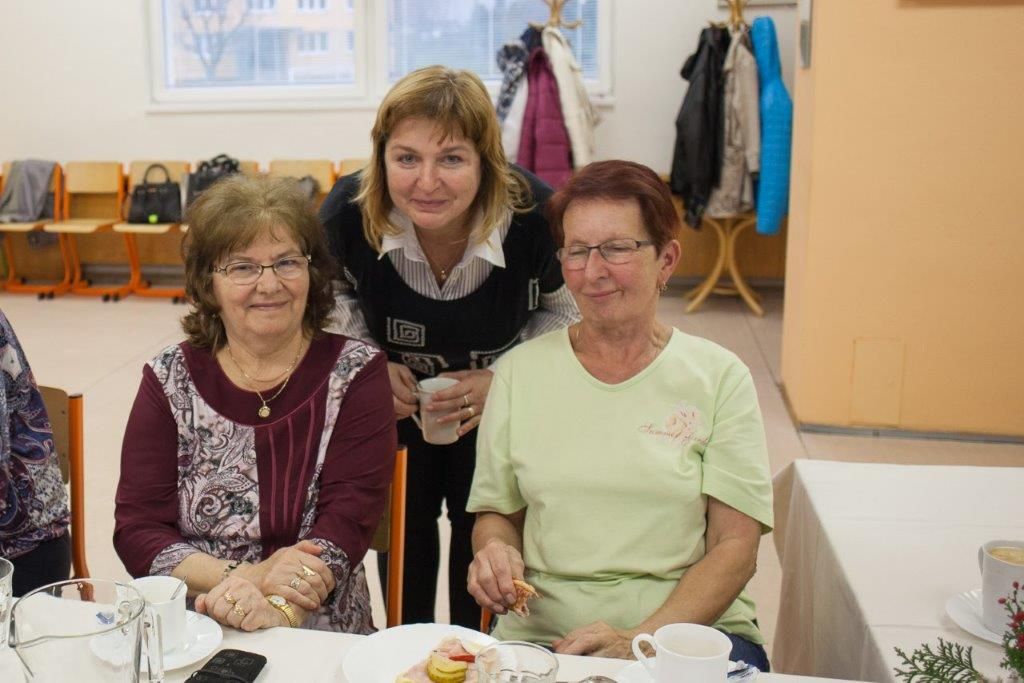 Po téměř hodinové prohlídce s výkladem jsme se přesunuli do kinosálu, kde proběhlo přátelské posezení s občerstvením. Při kafíčku se povídalo a vzpomínalo, prohlížely se fotografie ze společných akcí, ale také fotografie rodinné, probíraly se vnoučátka i pravnoučátka. Na závěr každý z bývalých kolegů obdržel malý předvánoční dárek a také leták o škole. Rozcházeli jsme se s pocitem příjemně stráveného odpoledne. Poděkování patří nejen těm, co přišli, ale i těm, kteří se se mnou podíleli na organizaci celé akce.
