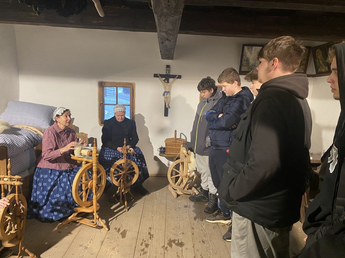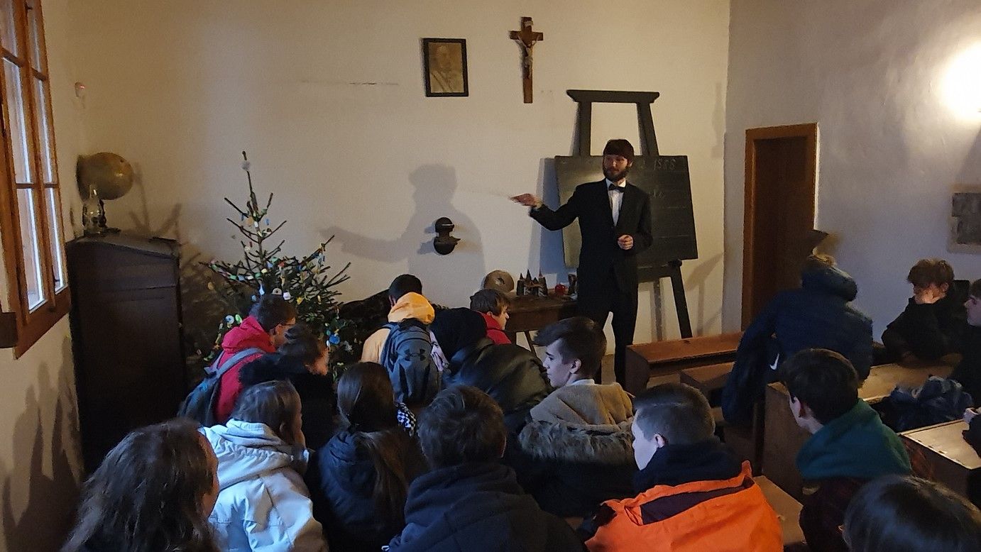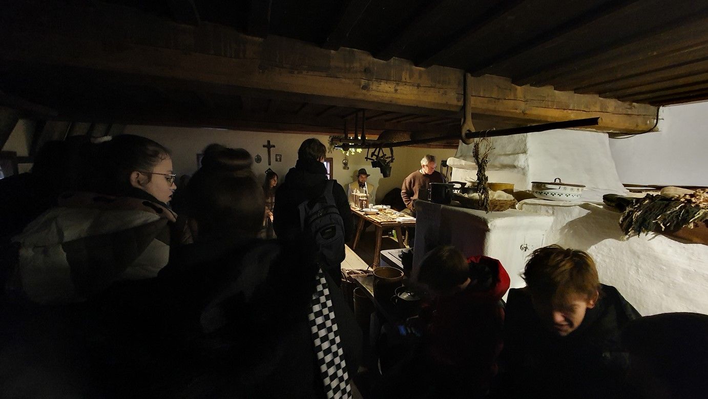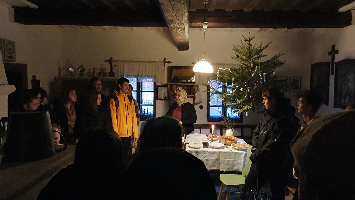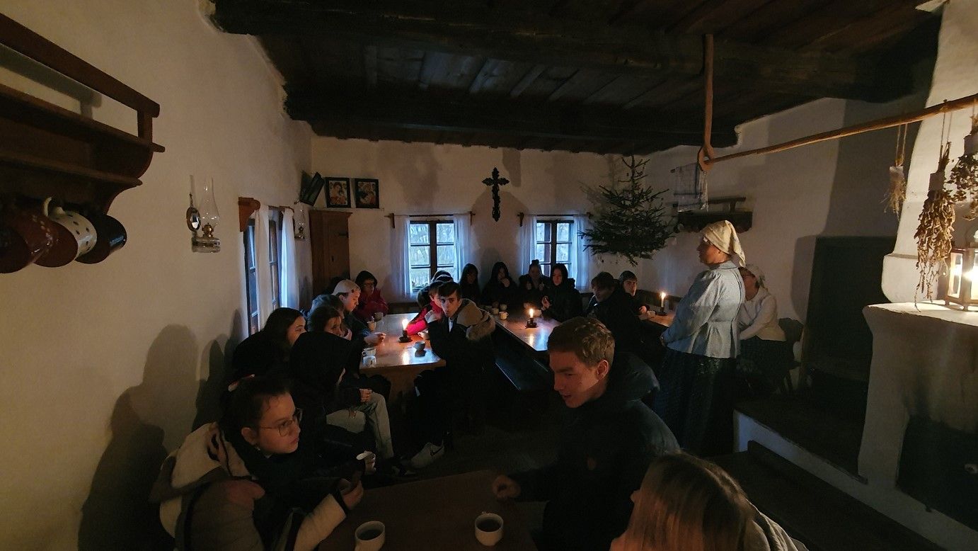 V chalupách Valašské dědiny se žáci seznámili s tím, jak vypadal život v minulých staletích v době zimy. Řada dřevěnic ožila činnostmi typickými pro toto období. Zajímavé byly ukázky zpracování vlny, vyřezávání dřevěných figurek do betlémů i výroba svíček z včelího vosku. S velkým ohlasem se setkala návštěva usedlosti, kde hospodyně pekly a zdobily perníčky. Světnice voněla kořením, byla krásně vyhřátá od kamen a nenašel se nikdo, komu by darovaný perníček nechutnal. V domě sedláka se ochutnávala dokonce vánočka a v chalupě na samém vršku dědiny se odlévalo olovo a věštilo. Ve škole měli žáci možnost usednout do dřevěných lavic a vybraní jedinci na vlastní kůži zakusili i fyzické tresty, které kdysi byly součástí školního života. V poslední chalupě na každého účastníka čekal hrnek bylinkového čaje s perníkem a povídáním o tom, jak vypadal tradiční Štědrý večer. Příjemný zážitek dokreslovaly první sněhové vločky.