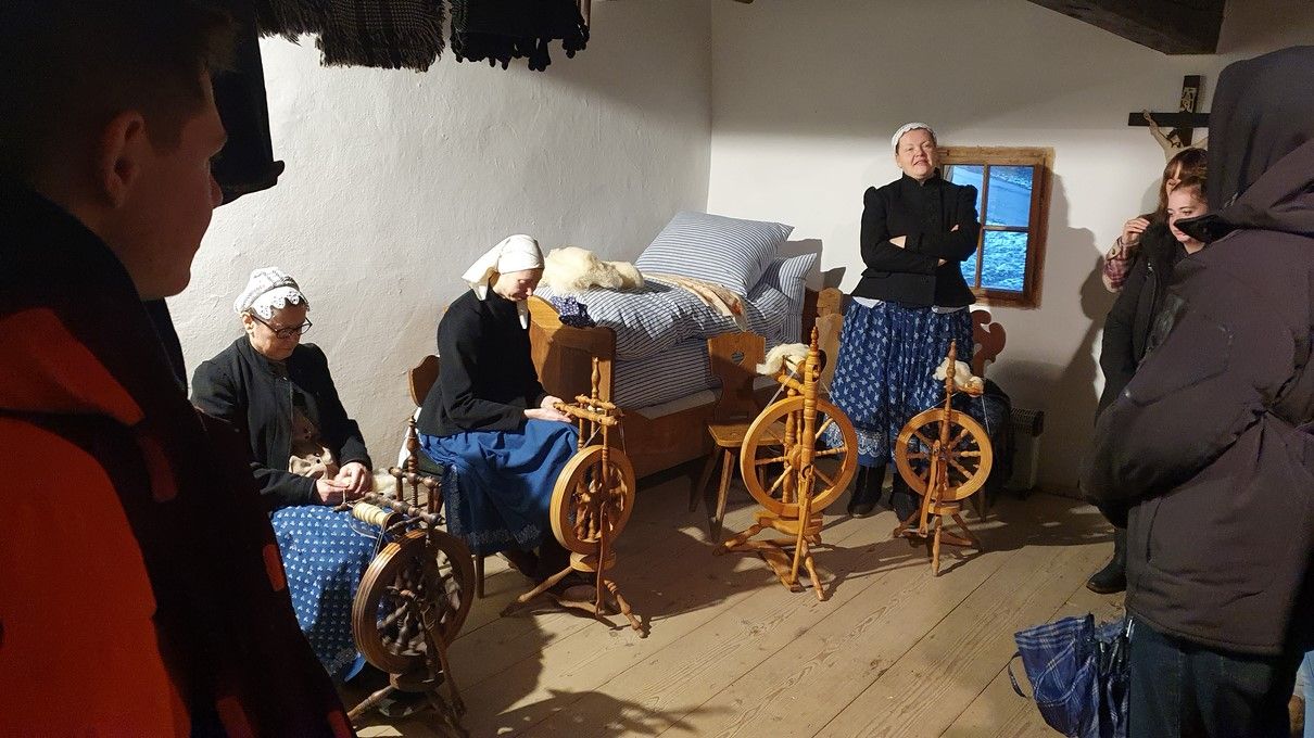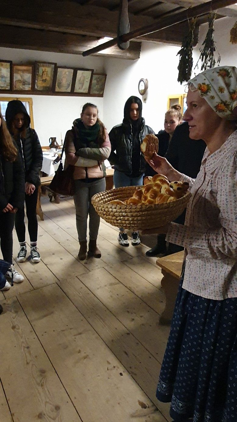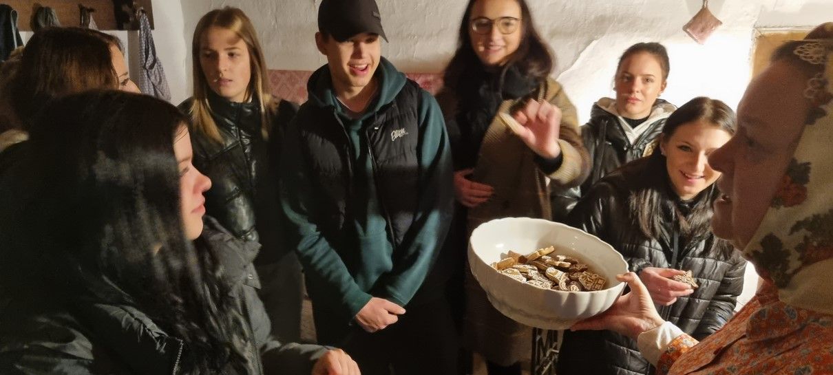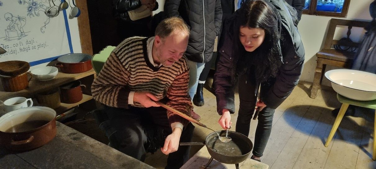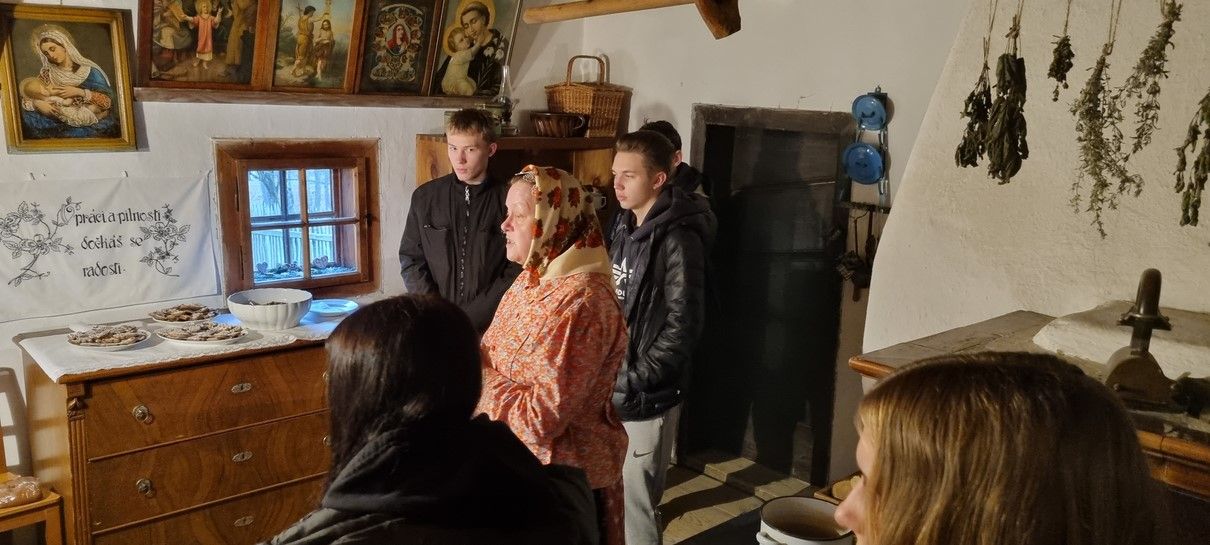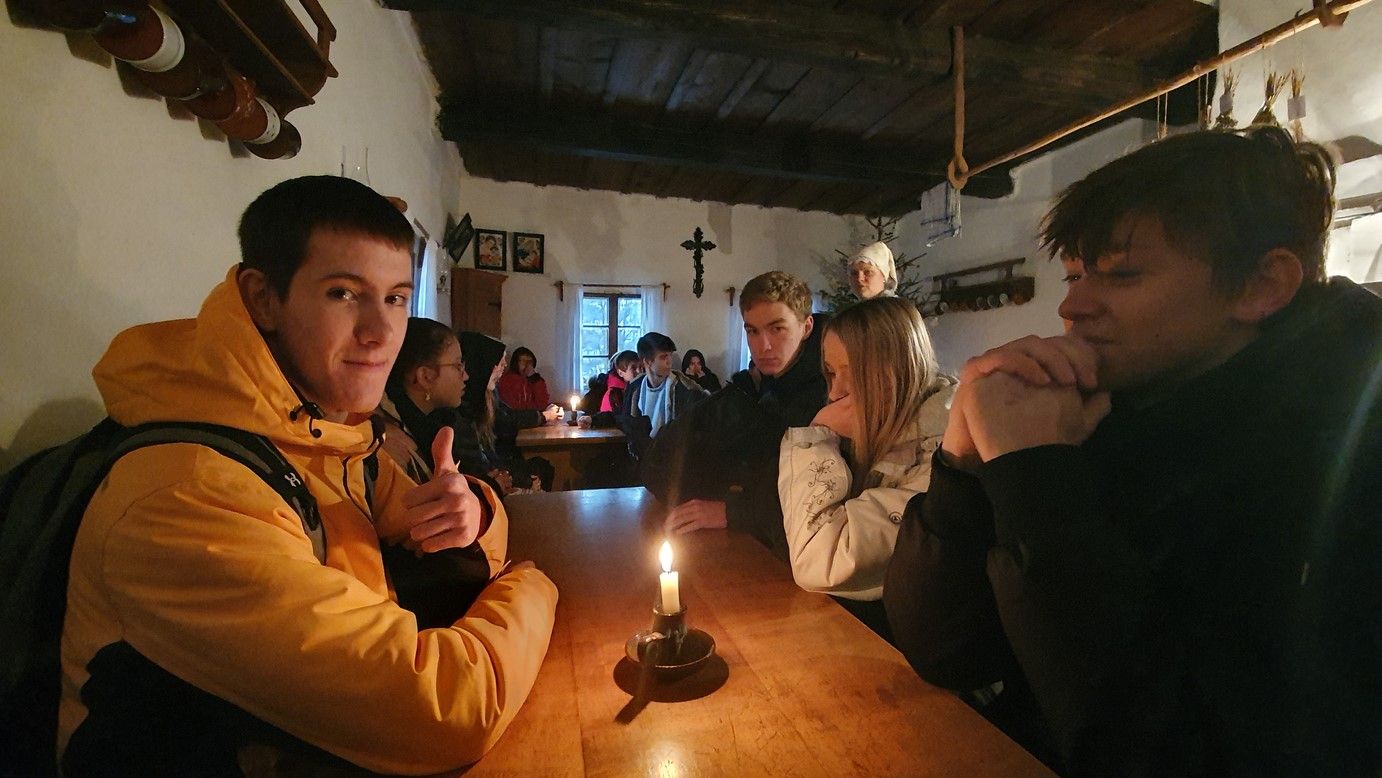 V chalupách Valašské dědiny se žáci seznámili s tím, jak vypadal život v minulých staletích v době zimy. Řada dřevěnic ožila činnostmi typickými pro toto období. Zajímavé byly ukázky zpracování vlny, vyřezávání dřevěných figurek do betlémů i výroba svíček z včelího vosku. S velkým ohlasem se setkala návštěva usedlosti, kde hospodyně pekly a zdobily perníčky. Světnice voněla kořením, byla krásně vyhřátá od kamen a nenašel se nikdo, komu by darovaný perníček nechutnal. V domě sedláka se ochutnávala dokonce vánočka a v chalupě na samém vršku dědiny se odlévalo olovo a věštilo. Ve škole měli žáci možnost usednout do dřevěných lavic a vybraní jedinci na vlastní kůži zakusili i fyzické tresty, které kdysi byly součástí školního života. V poslední chalupě na každého účastníka čekal hrnek bylinkového čaje s perníkem a povídáním o tom, jak vypadal tradiční Štědrý večer. Příjemný zážitek dokreslovaly první sněhové vločky.