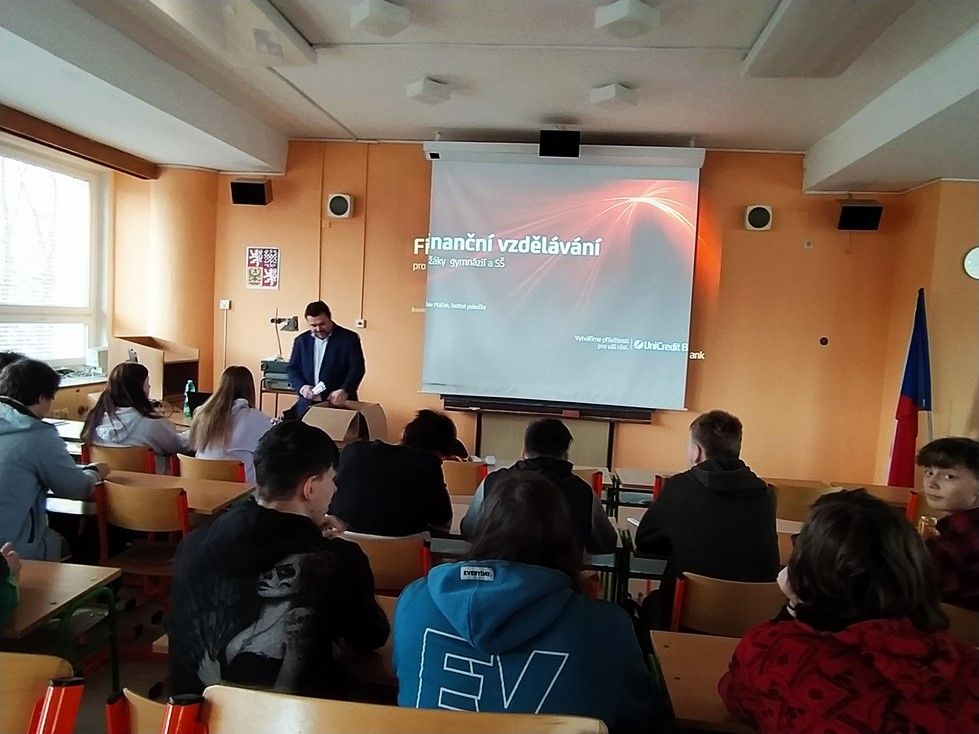 Na naši školu zavítali 27. 2. pan Ing. Petr Javorek a 1. 3. pan Ing. Bronislav Ptáček. Oba bankéři byli vybaveni výukovými materiály seznámili naše žáky s praktickými informacemi ze světa financí, přiblížili studentům, jak funguje kyberprostředí v bankovnictví, jaké problémy při správě účtů mohou nastat a samozřejmě nezapomněli ani na samotné základy bankovní identity.