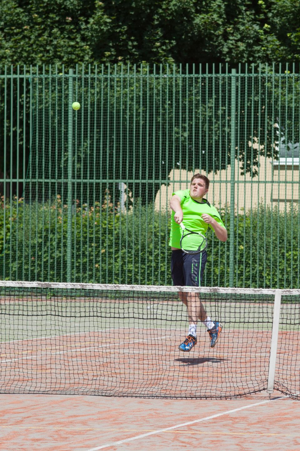 Hraje se v hodinách tělesné výchovy v rámci rozšiřujícího učiva. Závodní hráči a hráči soustavně hrající mají možnost po domluvě s trenéry hrát i mimo hodiny tělesné výchovy. Pro hráče se pořádá každoročně školní turnaj v tenise. Do tenisové akademie se zapojuje zhruba dvacet hráčů. Z toho šest hráčů hrají nebo hráli závodně tenis. Někteří se účastní celorepublikových i mezinárodních turnajů. Informace o dění v tenisové akademii najdou hráči ve vitríně koridoru sportovní haly.