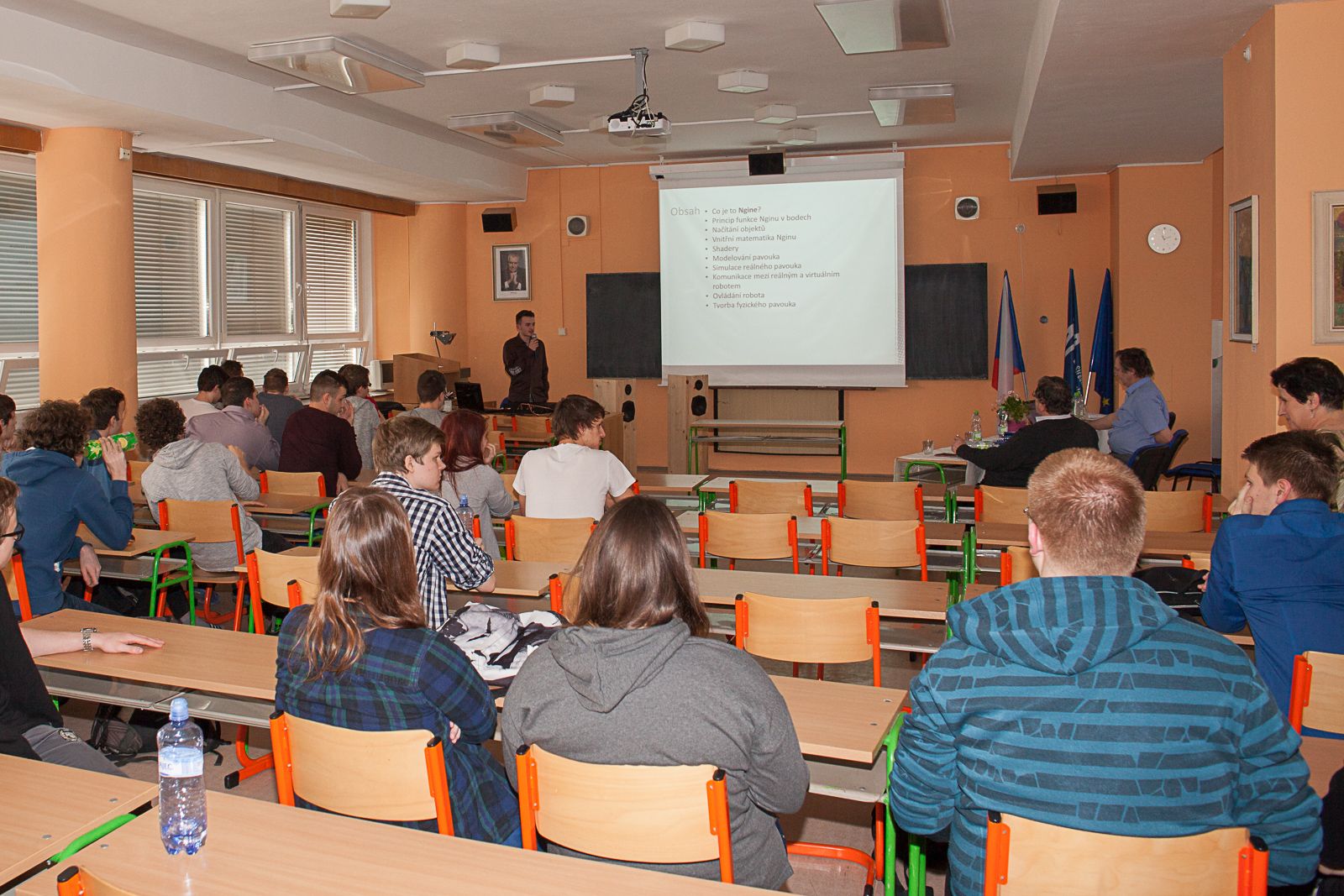 Ve 12 hodin všechny soutěžící přivítal zcela zaplněný sál. Diváci byli z řad studentů čtvrtých ročníků, kteří přišli své spolužáky podpořit a zároveň se podívat, jak vypadá obhajoba práce, která bude většinu z nich čekat v rámci maturitní zkoušky. Soutěžící byli velmi kvalitně připraveni a jejich výkony všichni sledovali se zaujetím.