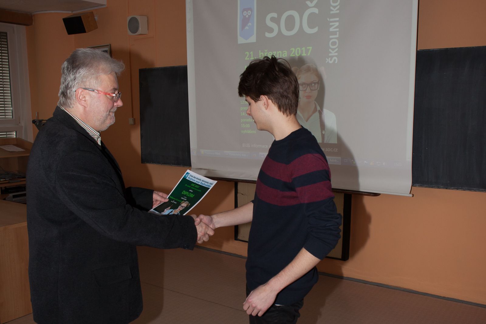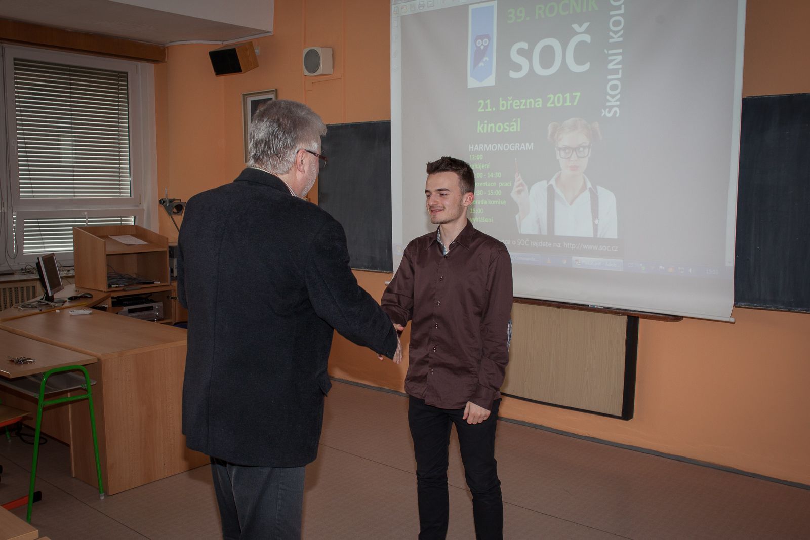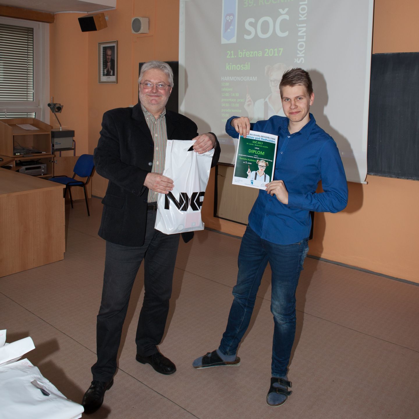 Okresní kolo se bude konat 4. dubna 2017 již tradičně ve Střední průmyslové škole stavební ve Valašském Meziříčí. Doufáme, že se našim studentům bude dařit a že své práce obhájí co nejlépe. Všichni ocenění obdrželi velmi hodnotné ceny, které se podařilo zajistit paní Ing. Janě Vaculínové od sponzorů - firmy ON-SEMICONDUCTOR, R-Computer, ROBE, NXP, Vakuum Servis a dalších. Všem sponzorům velmi děkujeme.