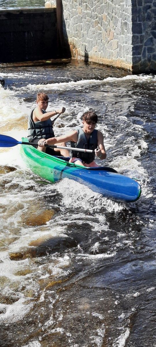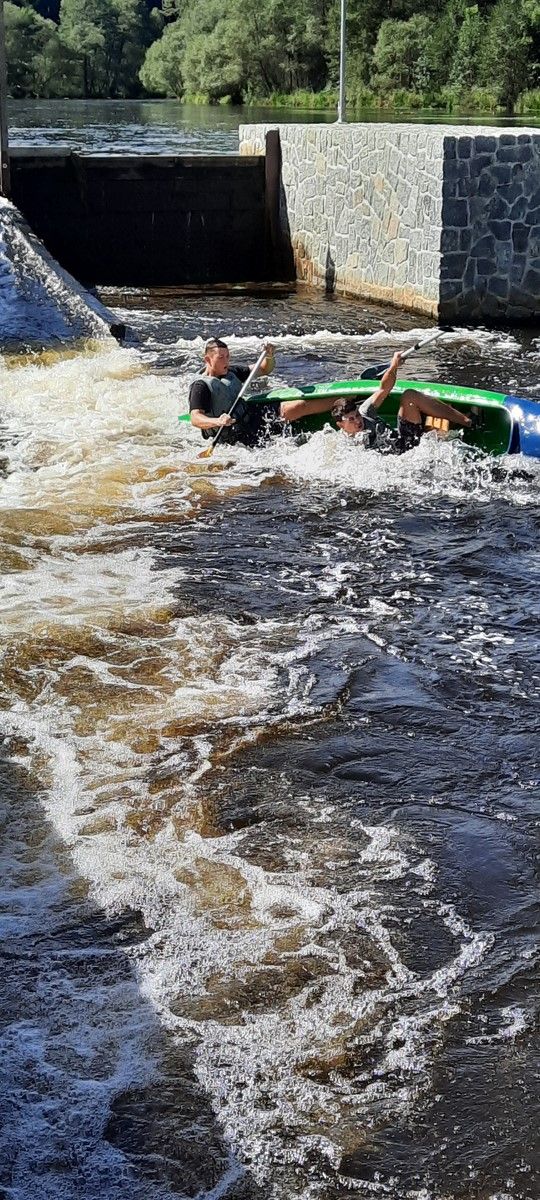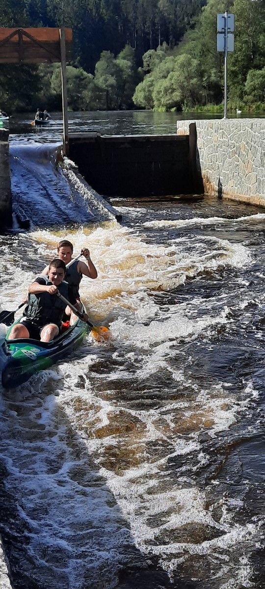 Ještě horší počasí následovalo v pátek, pršelo trvale, ale stále bylo ještě poměrně teplo. Tak ani trocha deště vodákům nezkazila radost z překonaných jezů, kterých bylo na celé trase celkem 11, a to nejrůznějších obtížností. Týden utekl jako voda a tak snad zůstane letošní „voda“ pro žáky pěkným zážitkem.